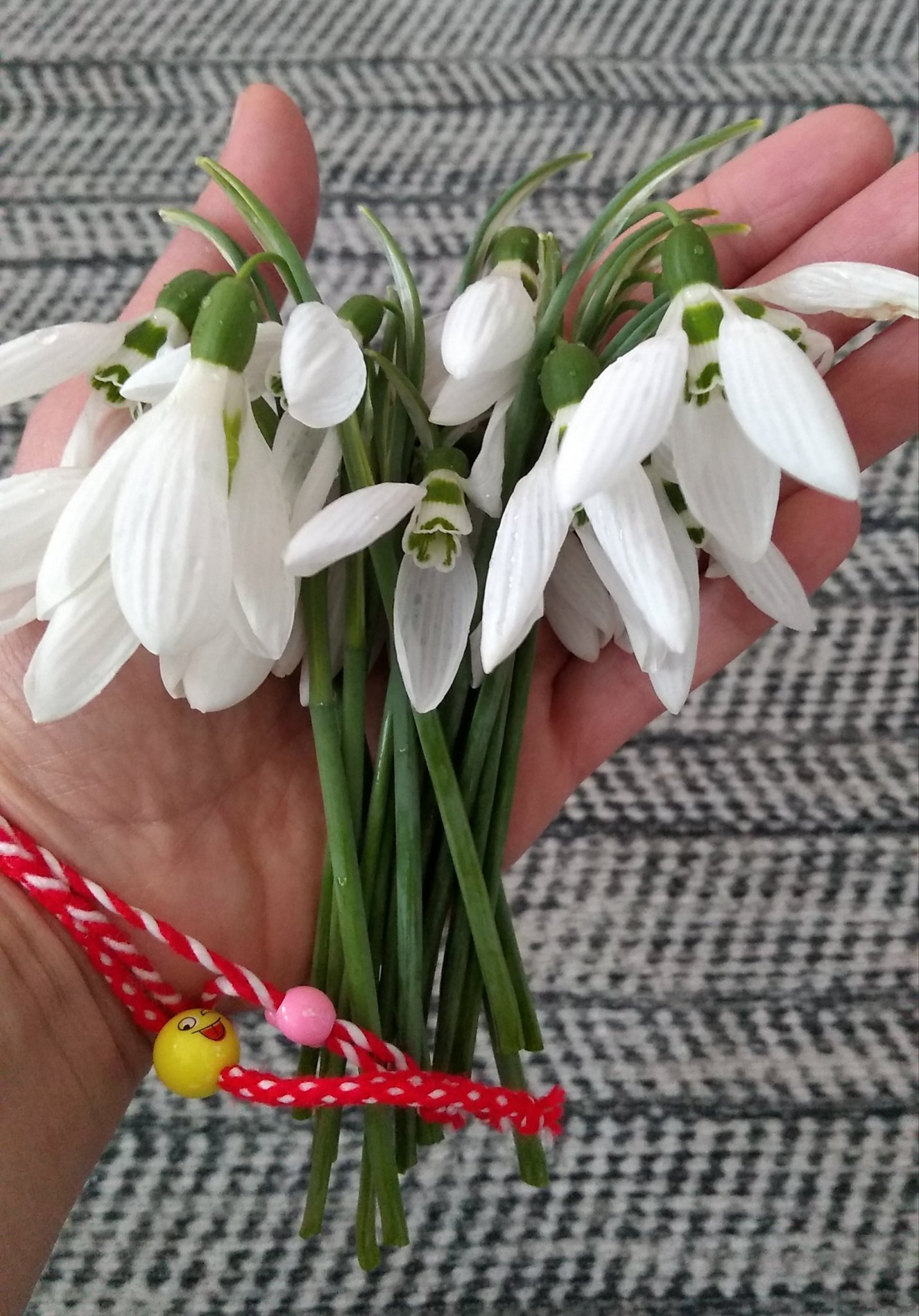 Закачих сутринта мартеници на домашните и Беболина мина и ни ги събра след малко. Нейни били, казва. Навърза си ги по ръцете и вече е доволна 😂