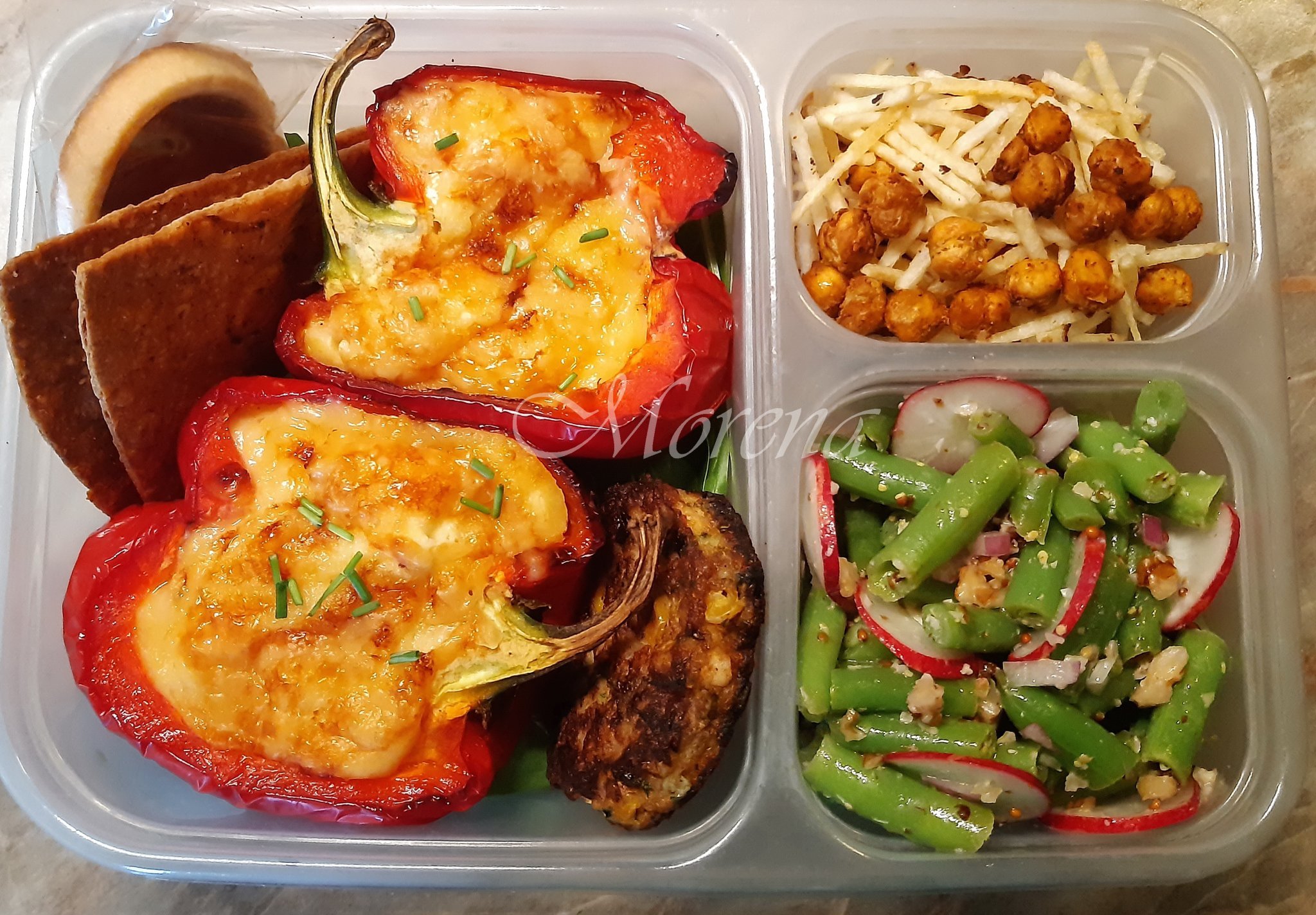 О - Пълнени чушки със суфле от сирена;  кюфте от тиквичка  и царевица;  домашен тортила чипс;  салата зелен боб с чеснов дресинг;  домашни хрупкав пикантен нахут и картофен чипс; ягодова тарталета (купешка)