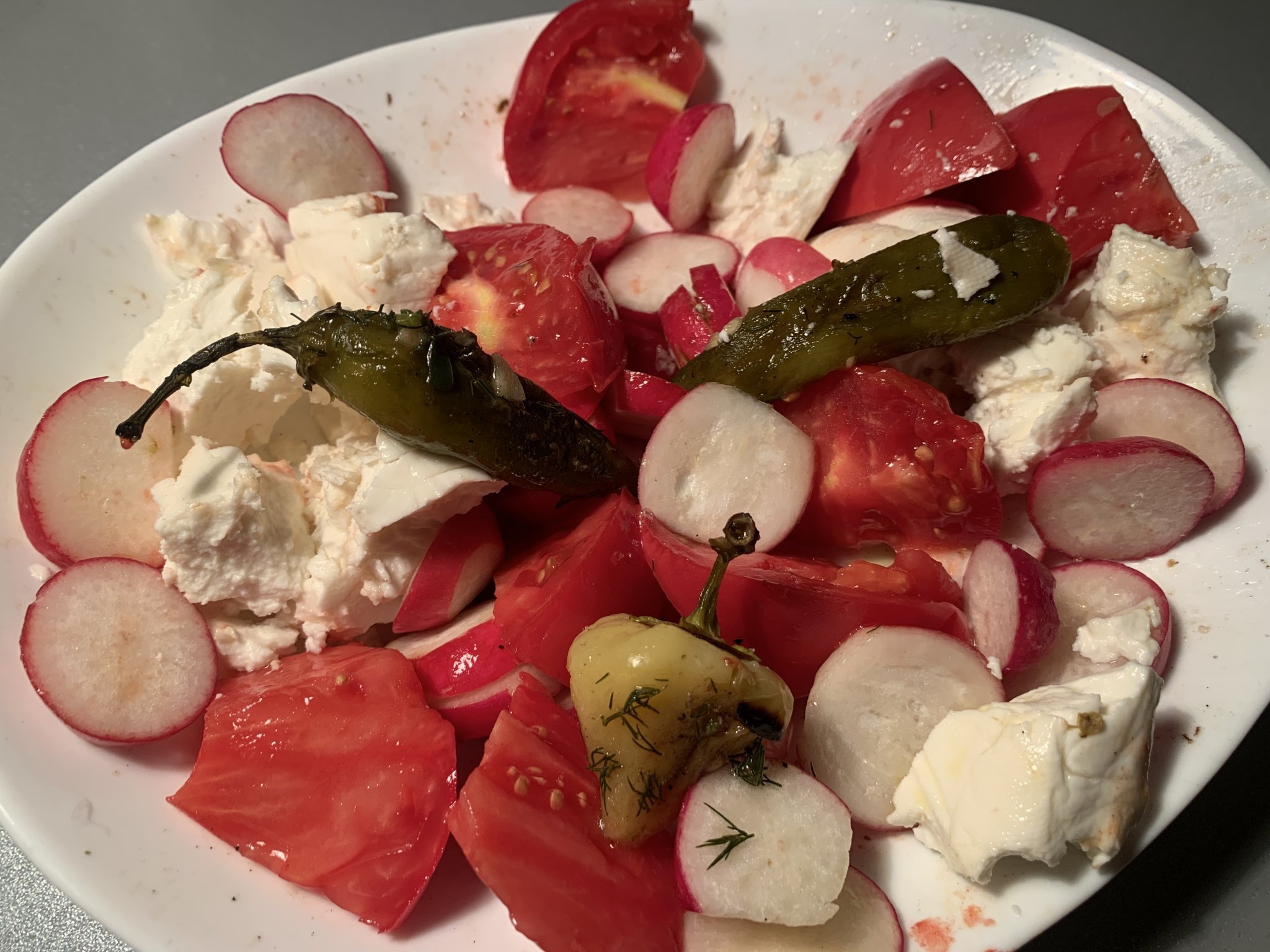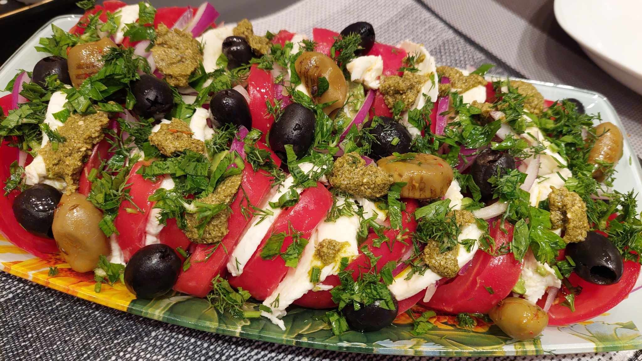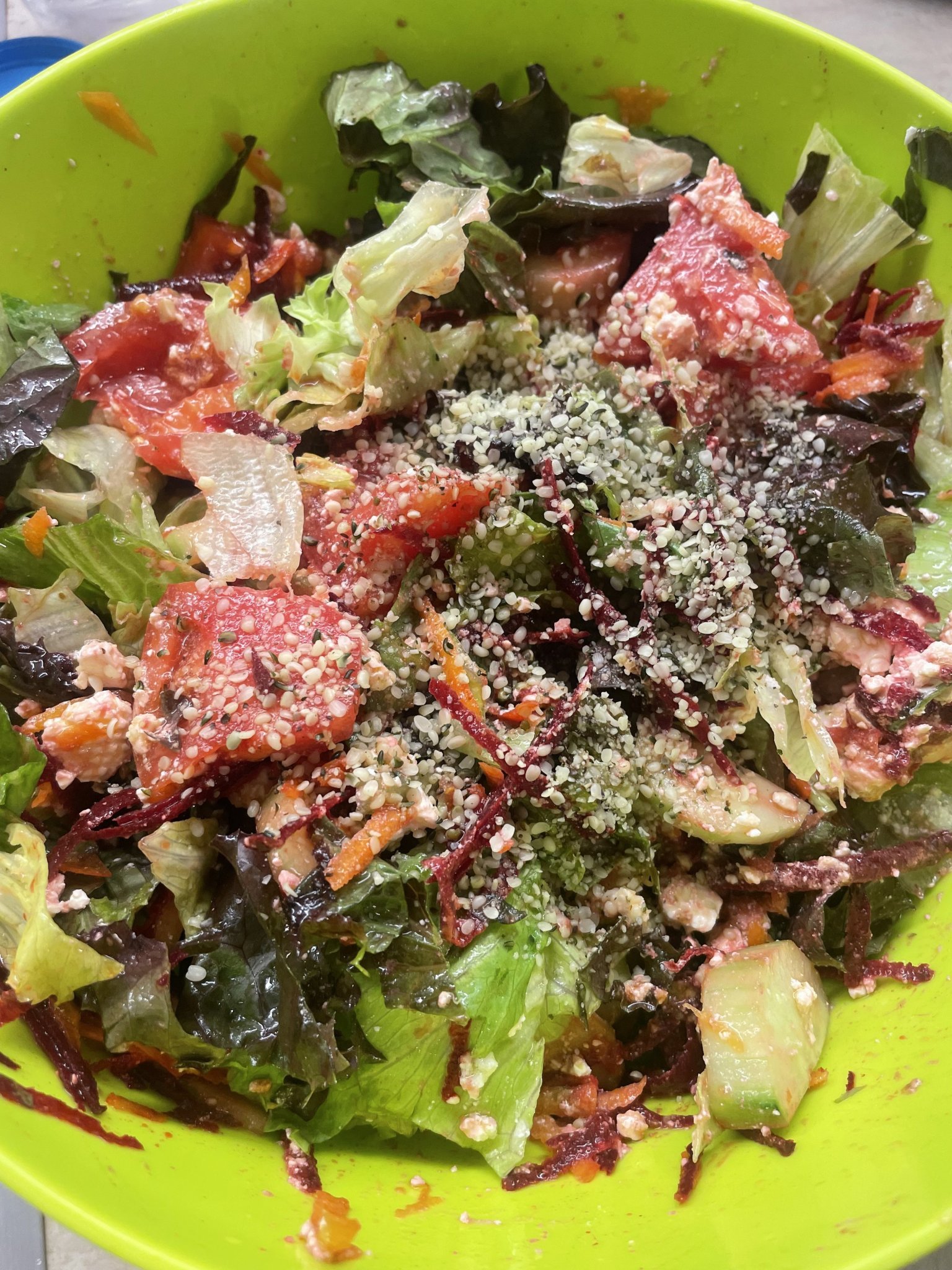 Форумът предлага разнообразие от салати, включително салата с авокадо, маслини и пържен лук, доматена и краставична салата, смесена зелена салата със сиврийски чушки, магданоз, нахут и мини моцарела , червен лук; аллабаш на тънко нарязани шайби с домати и пресен лук; бланширани зелеви листа с моркови, репички и краставица, чесън, люта чушка и сусам; салата от черен ориз с манго, зелен лук , червена чушка, магданоз, ядки и салата от варен панджар с чесън и орехи; Radicchio салата с пресен червен лук, перлен лук, черни маслини, домат и лимонов сок; балсамова редукция със зехтин.