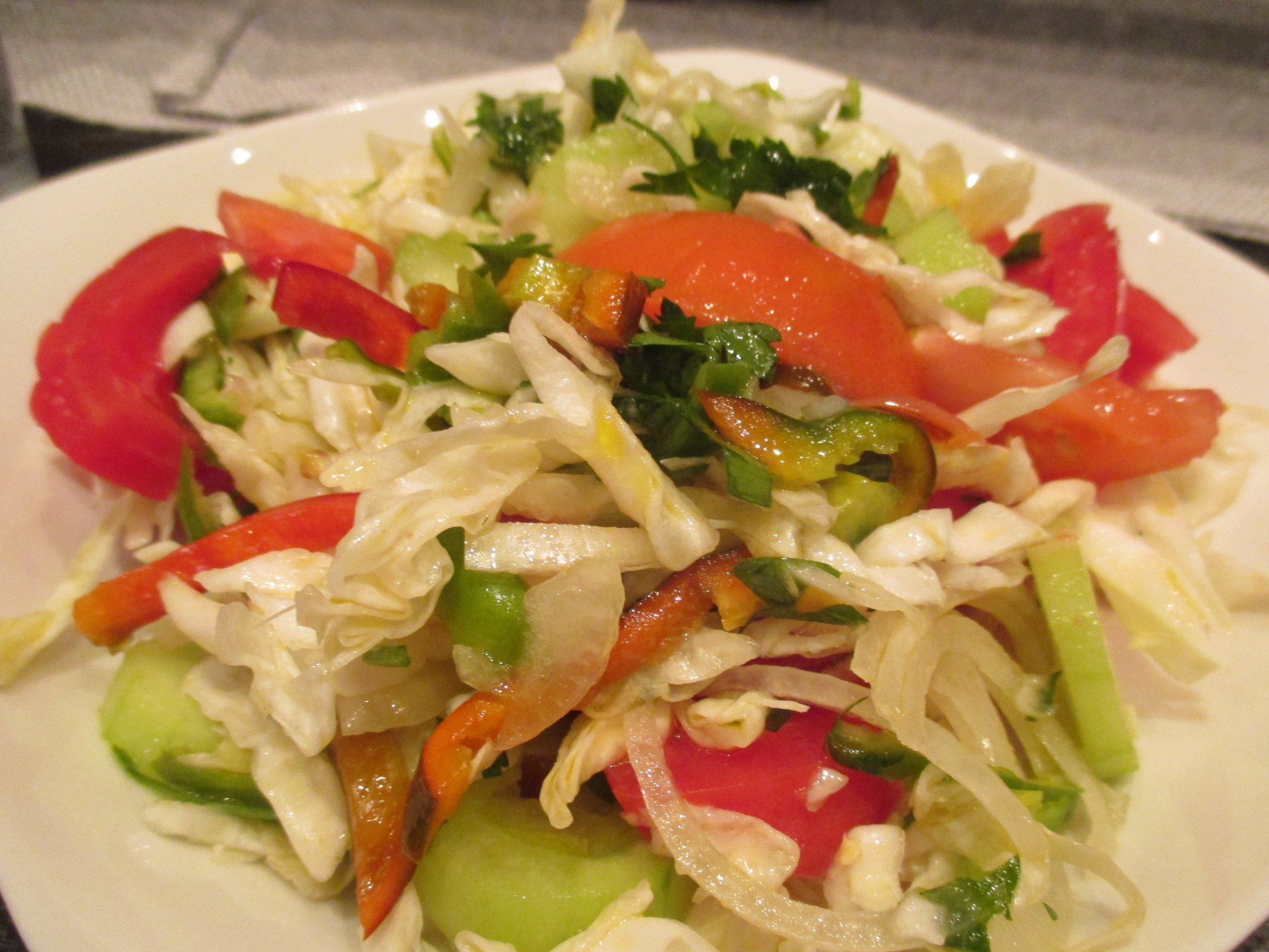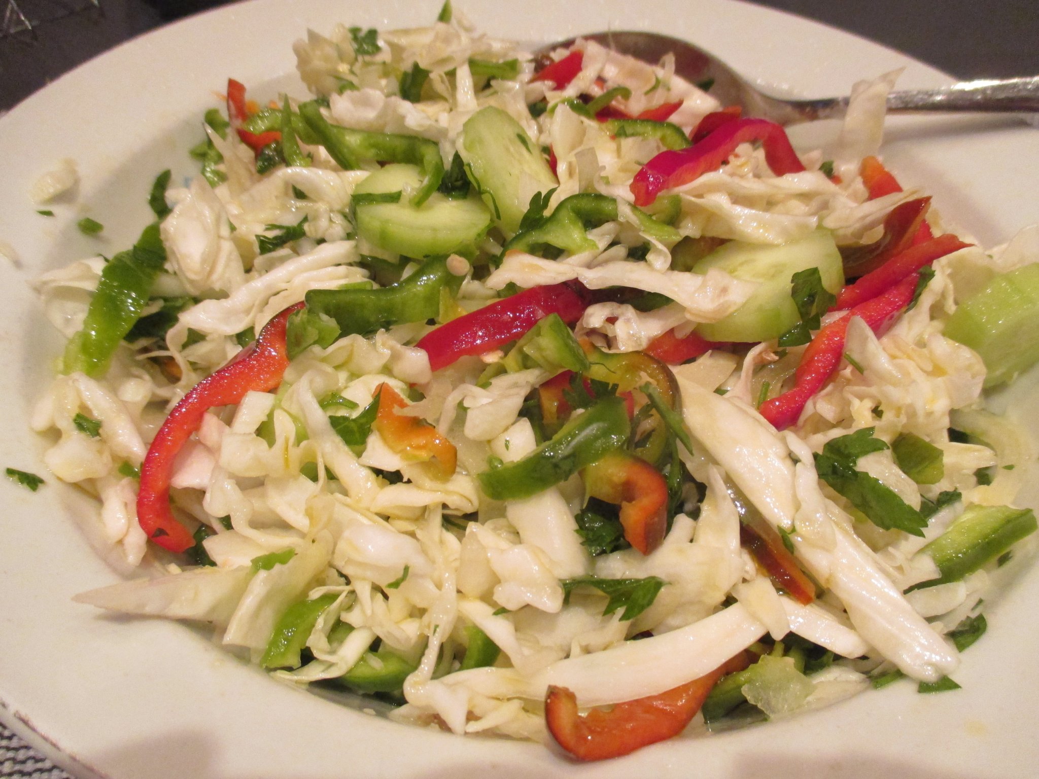 Текстовете, обединени заедно, са: Формулировката споменава различни видове дресинг за салати, като соев сос, оризов оцет, сол, захар и сусам; дресинг от кисело мляко; кюрдийски сос; чесън на прах; сол; капчици лимон и зехтин; дресинг от чесън, уасаби , френска горчица, зехтин и ябълков оцет; дресинг от цял лайм, сол, черен пипер, зехтин и малко ябълков оцет; и други. Някои нетрадиционни съставки, споменати във форума, включват печени бадеми, сушени боровинки , печен ананас , копър , капсаицин , сумак , палмова захар, джинджифил на прах, заатар, песто, карамболa, къдраво зеле , манго и нар. Освен това се споменава използването на заливка от печена пита със заатар.