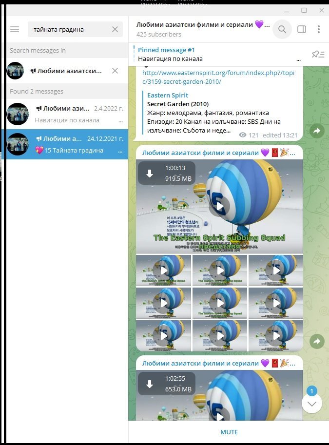 Удобно ми е защото си ползвам лаптопа като телевизор Joy Когато преди години вайбър и уатсъп дадоха достъп до информацията за потребителските акаунти, а собственикът мисля руснак беше отказа, се прехвърлих там. Не че имам какво да крия, ей така реших да си протестирам по дефолт Joy Иначе е като всички останали - намираш групата която те интересува, последваш и с лупичката търсиш каквото ти трябва. За да не ти излизат съобщения  има опция - муте и така.  Аз специално тази група не съм я заглушила, защото се вижда какво се превежда и кой пореден епизод е готов и качен.  Покрай търсеното излизат и други предложения. Търсиш "Илджиме" , излиза ти и  "Герой".