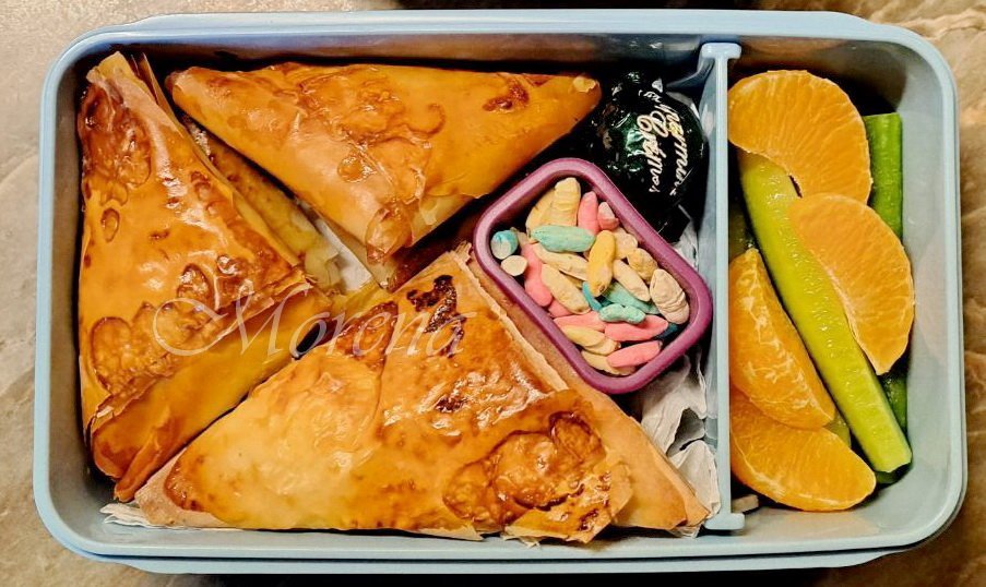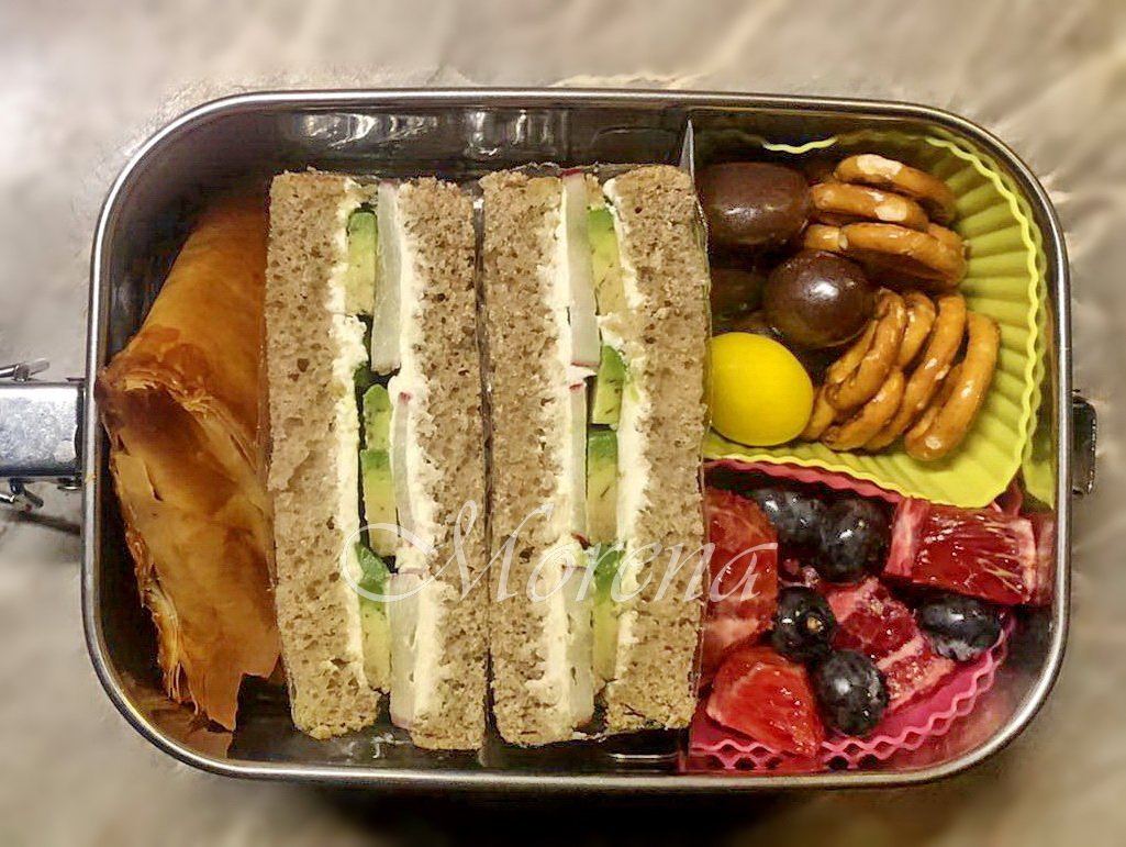 З – банички с яйце и сирене; с локум и орехи; сладко от ягоди; краставица и мандарини; Страчатела чийз йогурт; оризон и шокол.-ментова бонбона