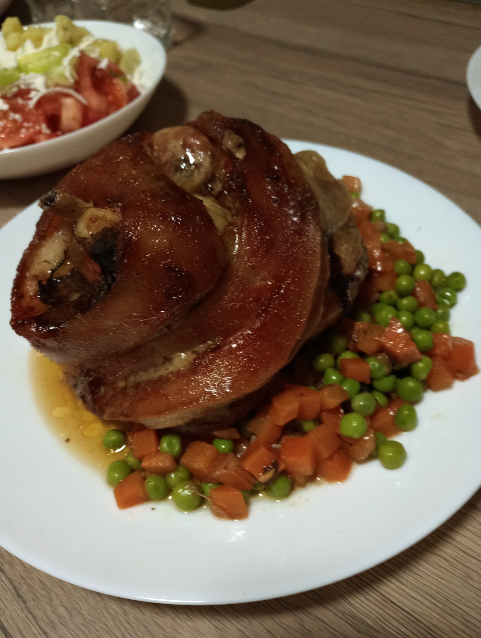 Нещо като салатка, гъби с масло, зеленчук и сиренца, основното агнешко с бира Гинес го готвих в бавната тенджера целия ден и трябваше да се чака без да се прекалява с похапването преди това😁