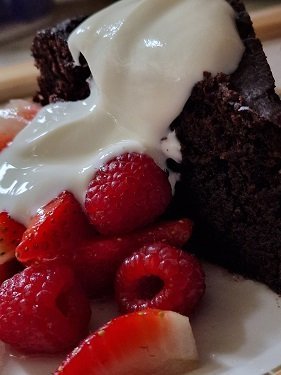 И кекс с Гинес, засега само с плодчета и кисело мляко, утре мисля да го гарнирам с нещо друго, може би някакво кремче ще му врътна да го полея, но още го мисля