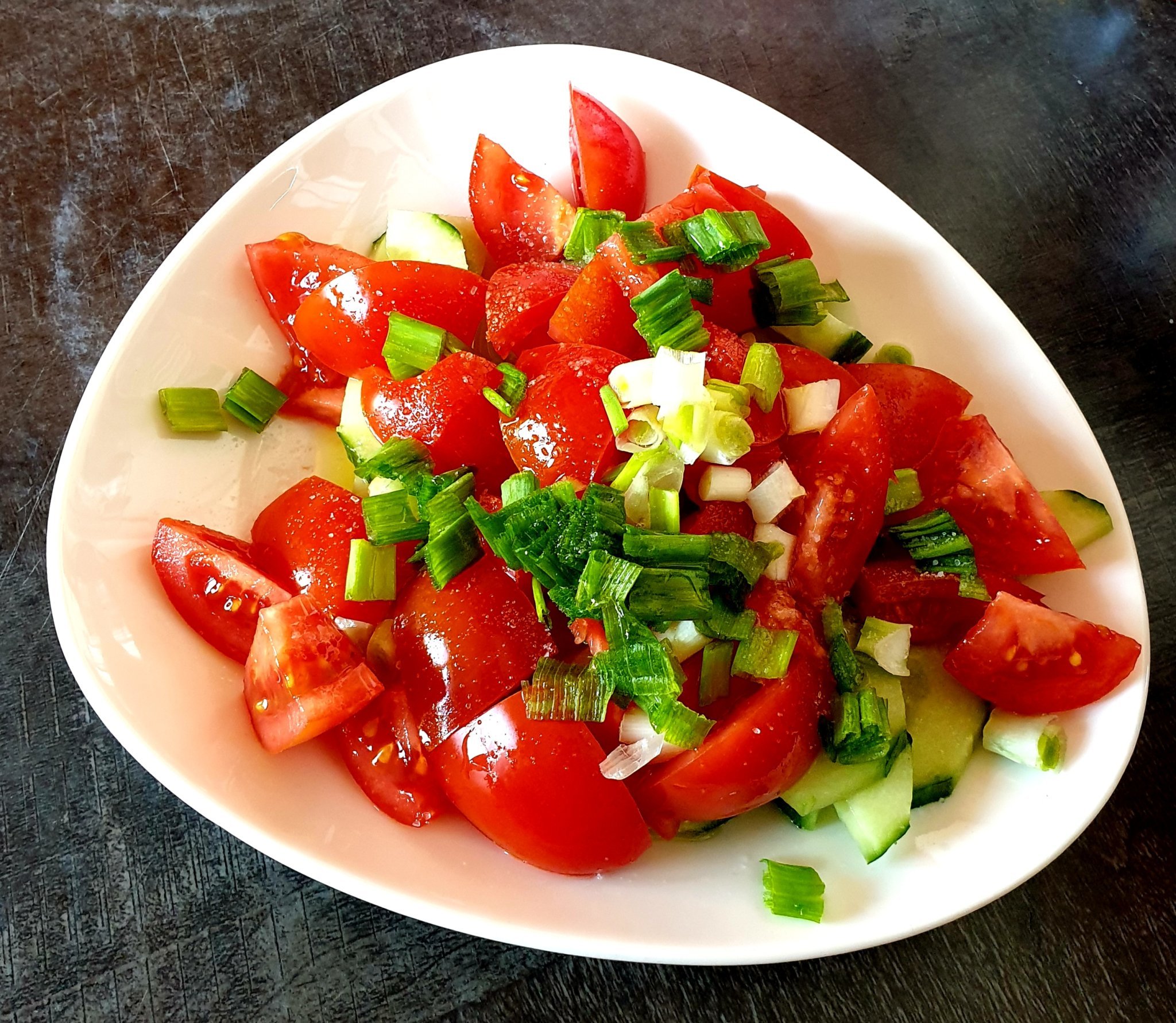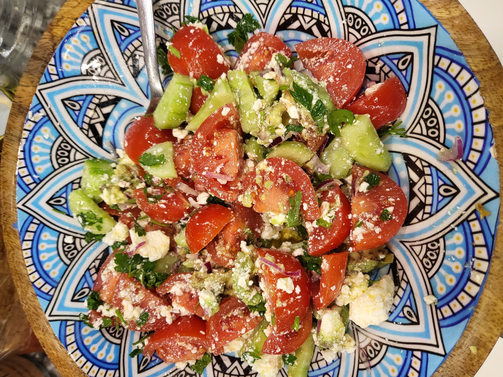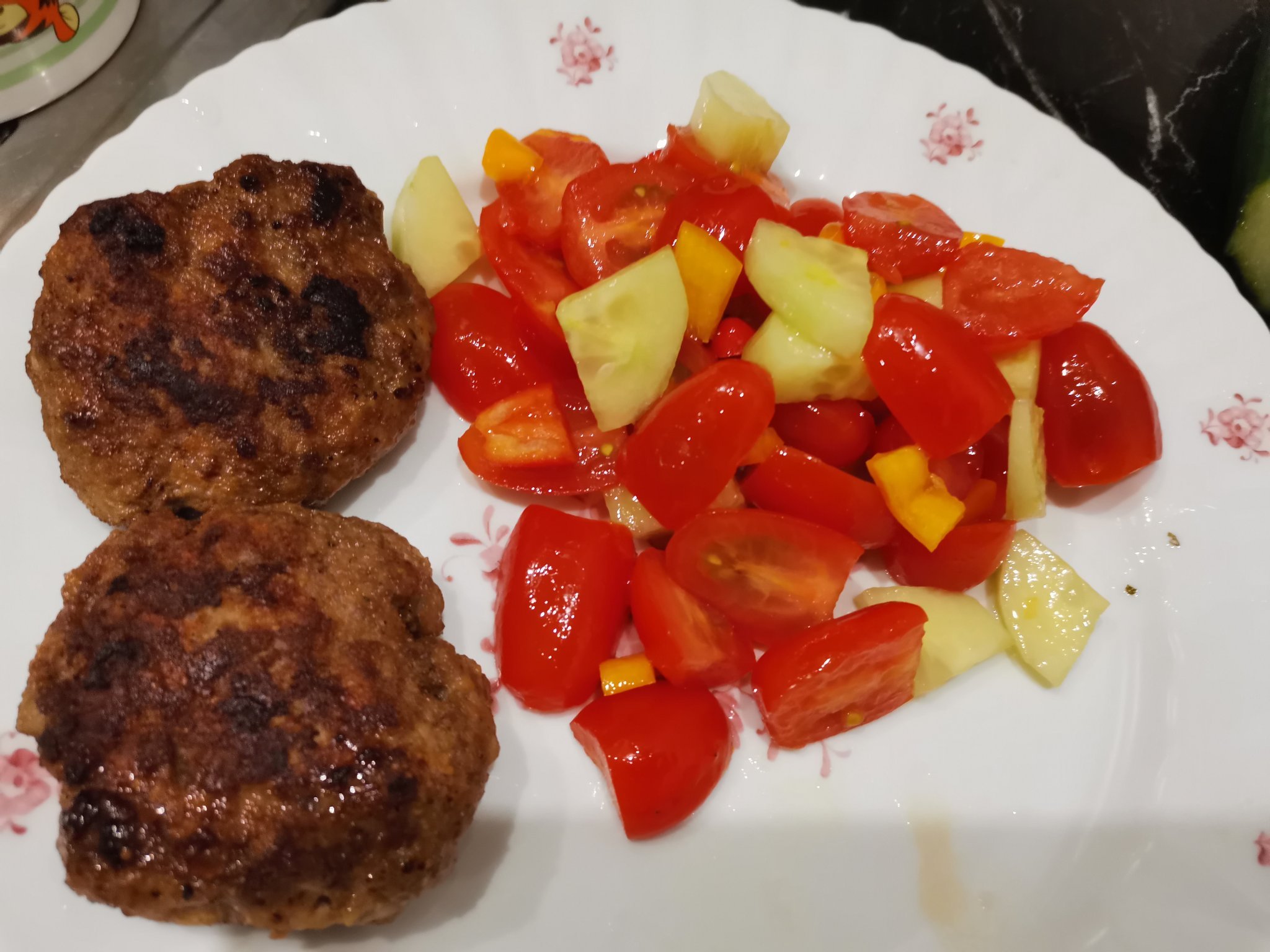 Селска салата и двойка кюфтенца на еър фраер за неядящия зелении