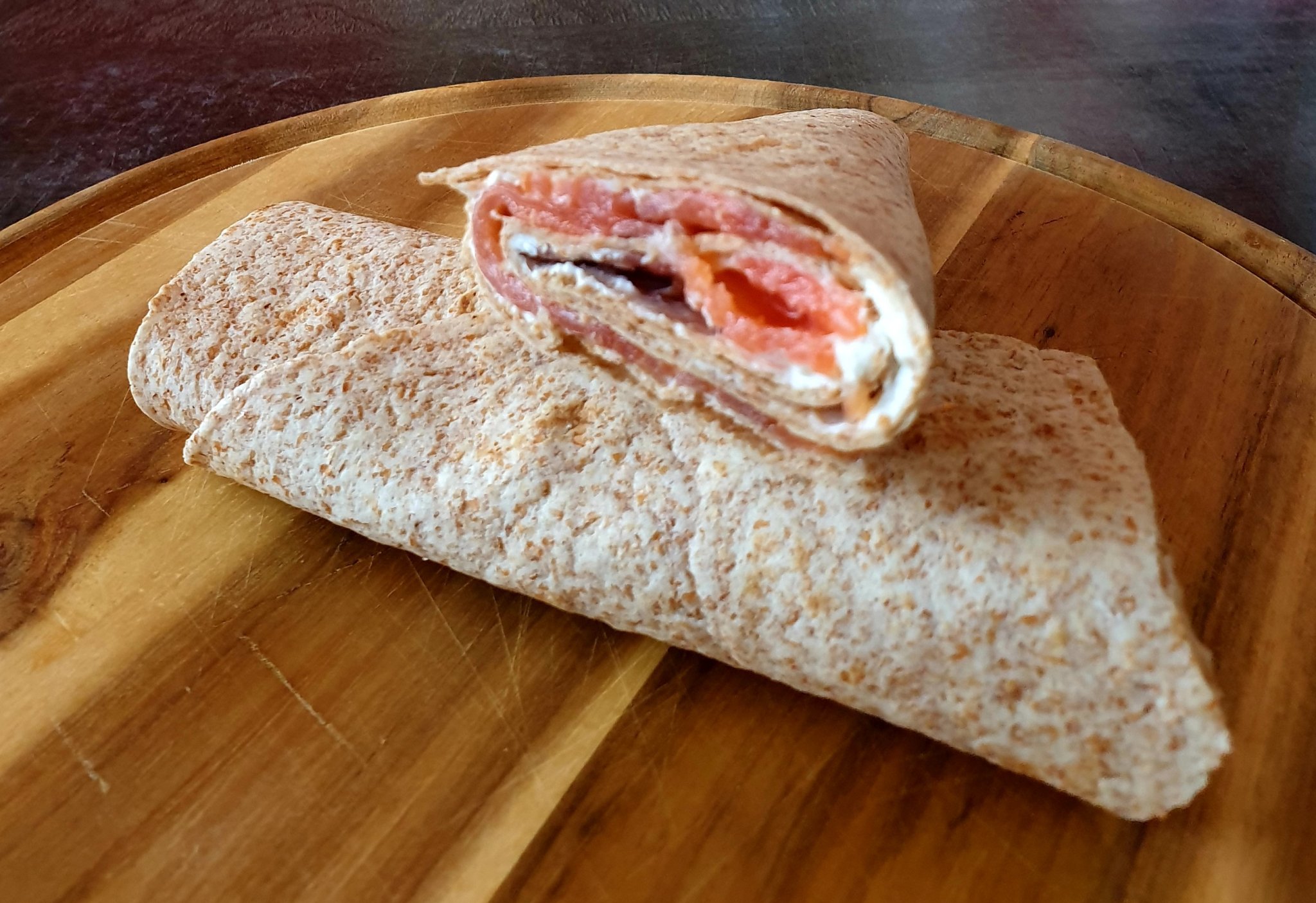 Сандвич с най-пухкавите израелски кифли, пушена сьомга и крема сирене.
