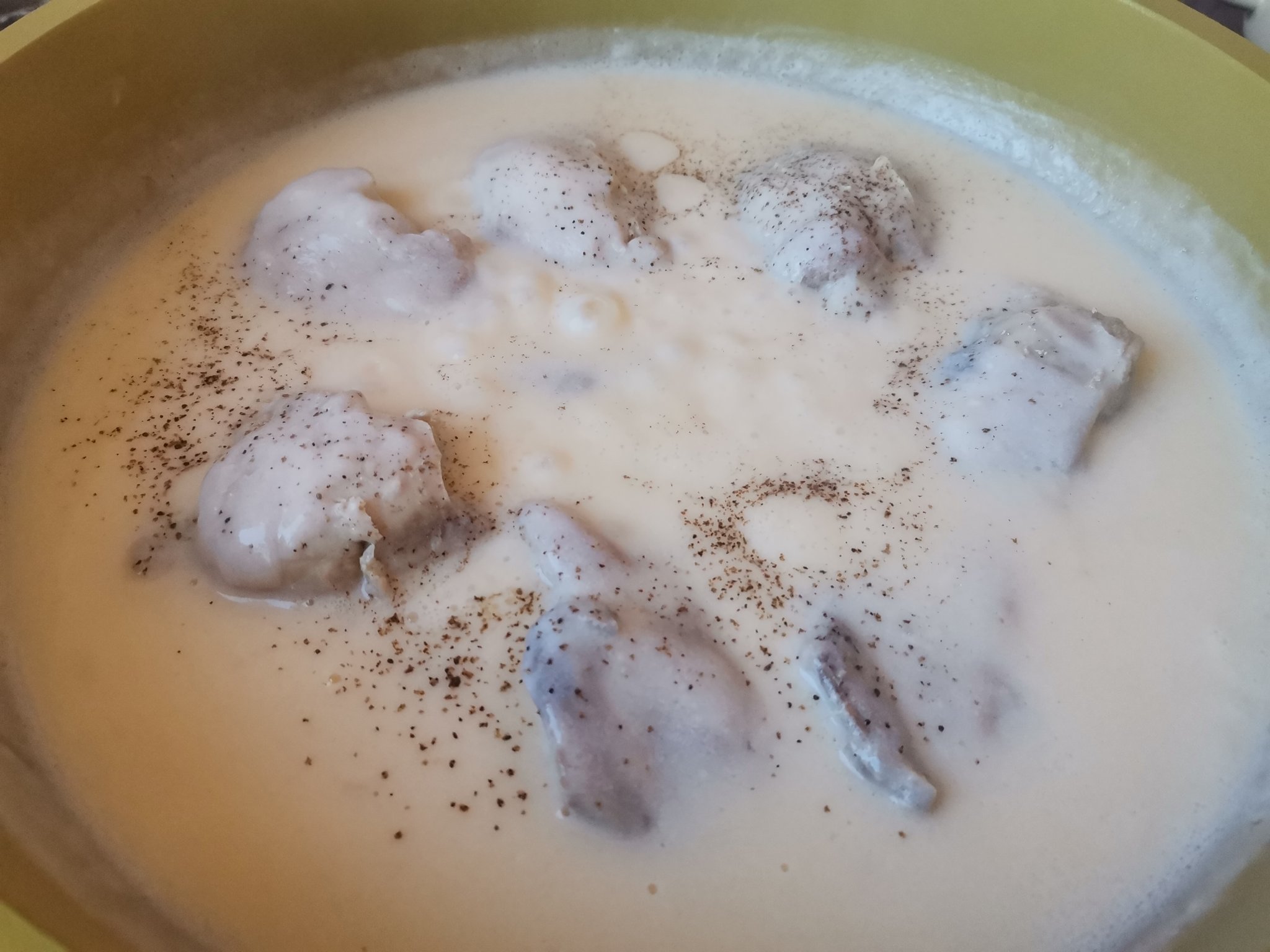 Отдавна не бях правила пиле фрикасе. За припомняне ползвах рецептата на Супичка. Много вкусно се получи.