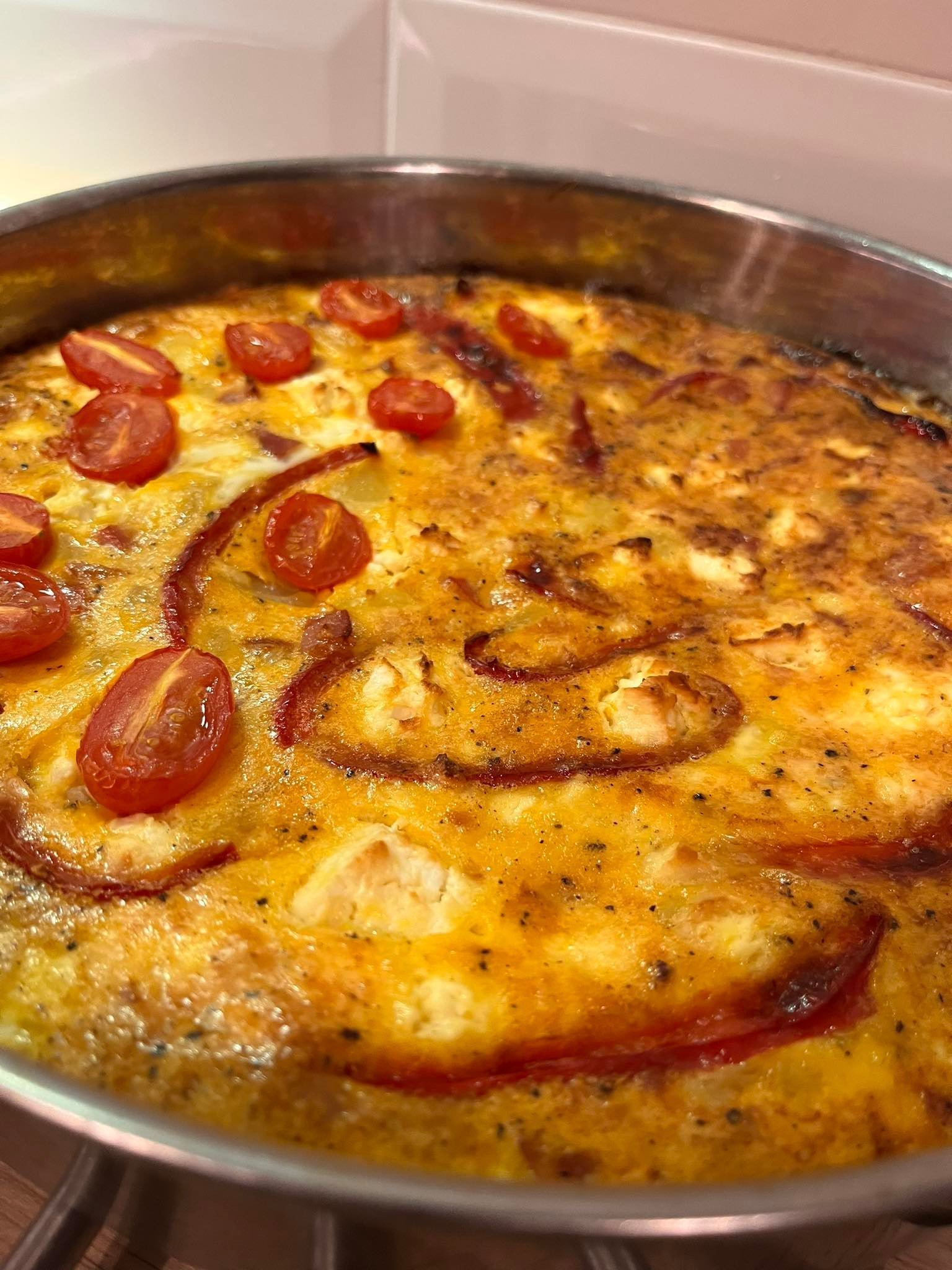 Фритата (доматите хем бяха излишни, хем закъснях със слагането).
