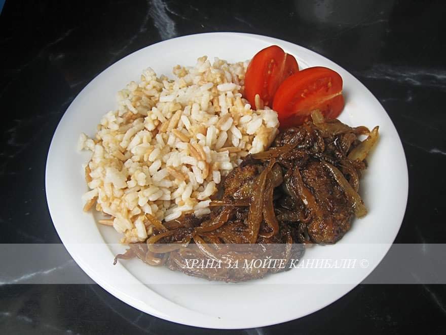 Заешки дробчета с малко шехриели пилаф Simple Smile т.е. ориз с арпа фиде.
