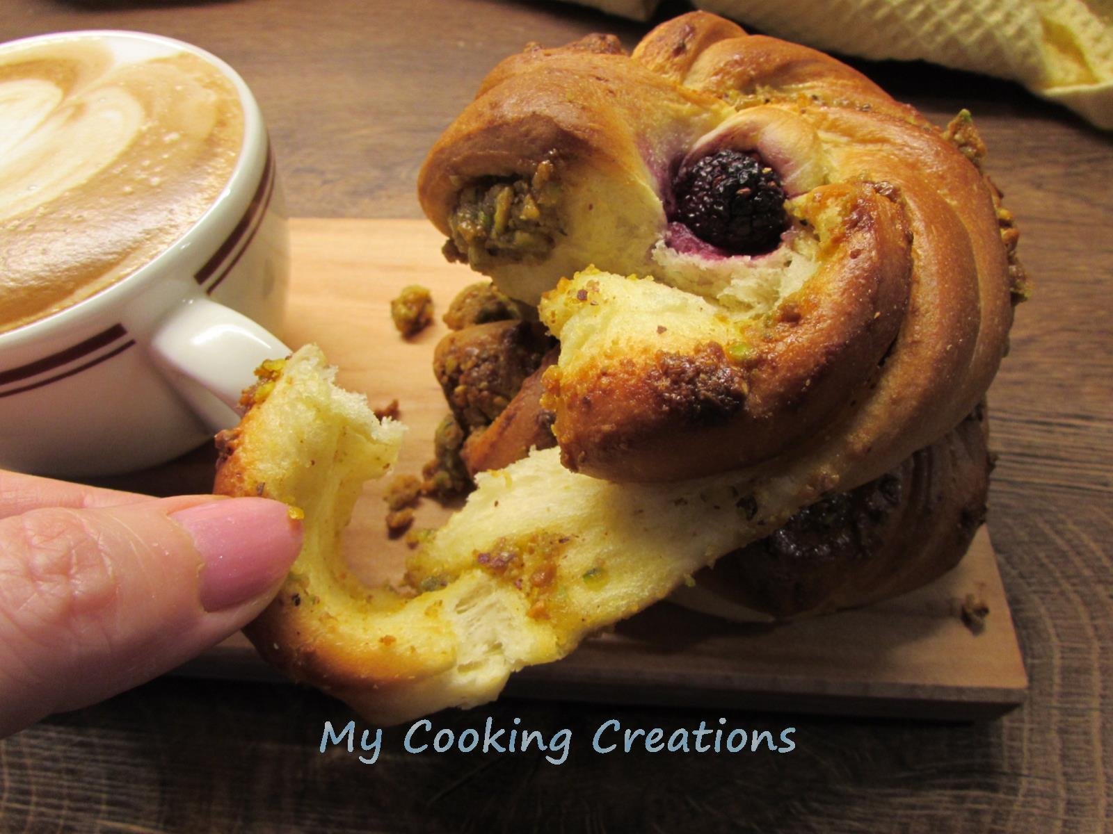 Козуначени рулца с шамфъстък и капучино(мм му е майстор) за закуска.