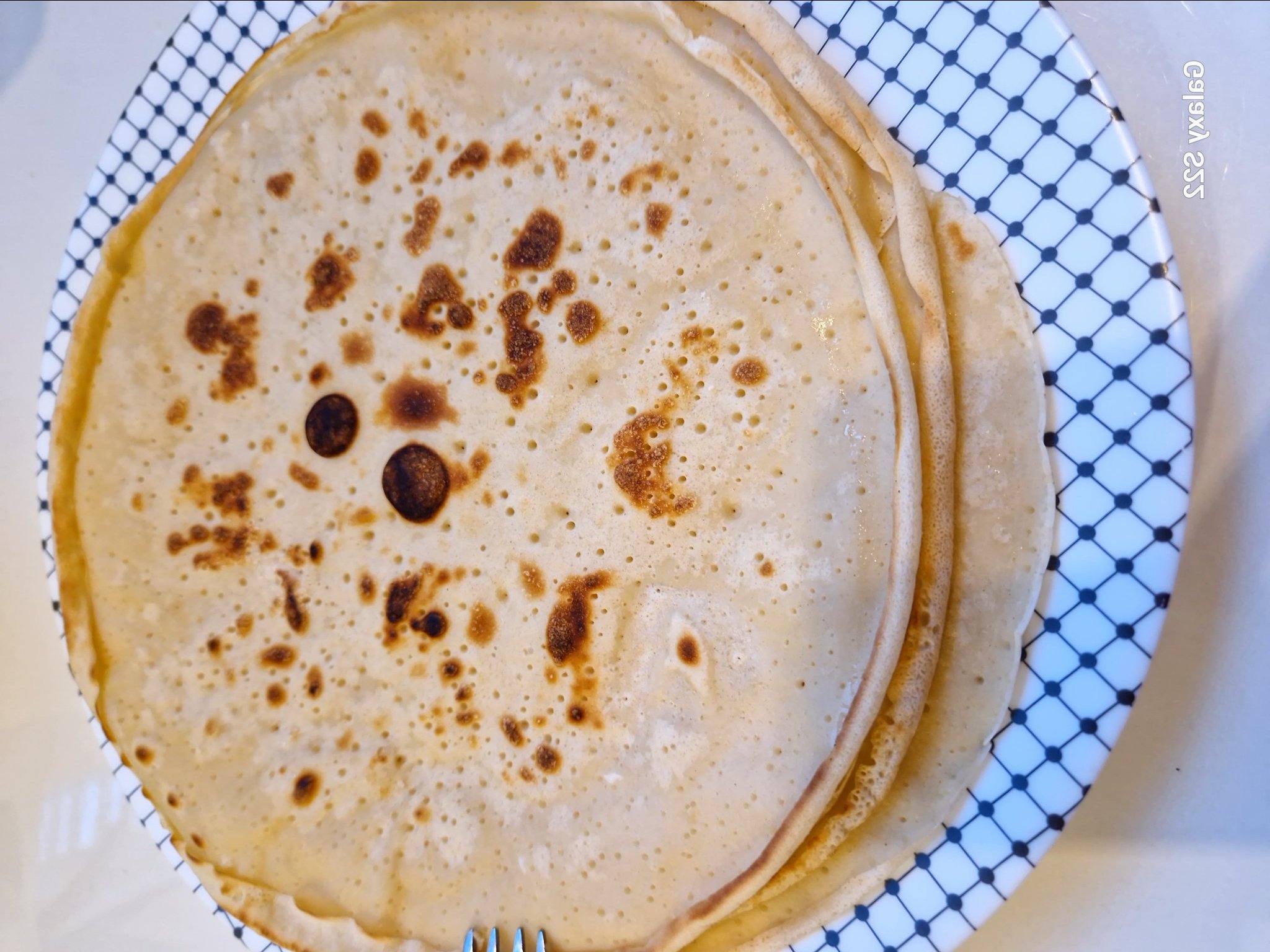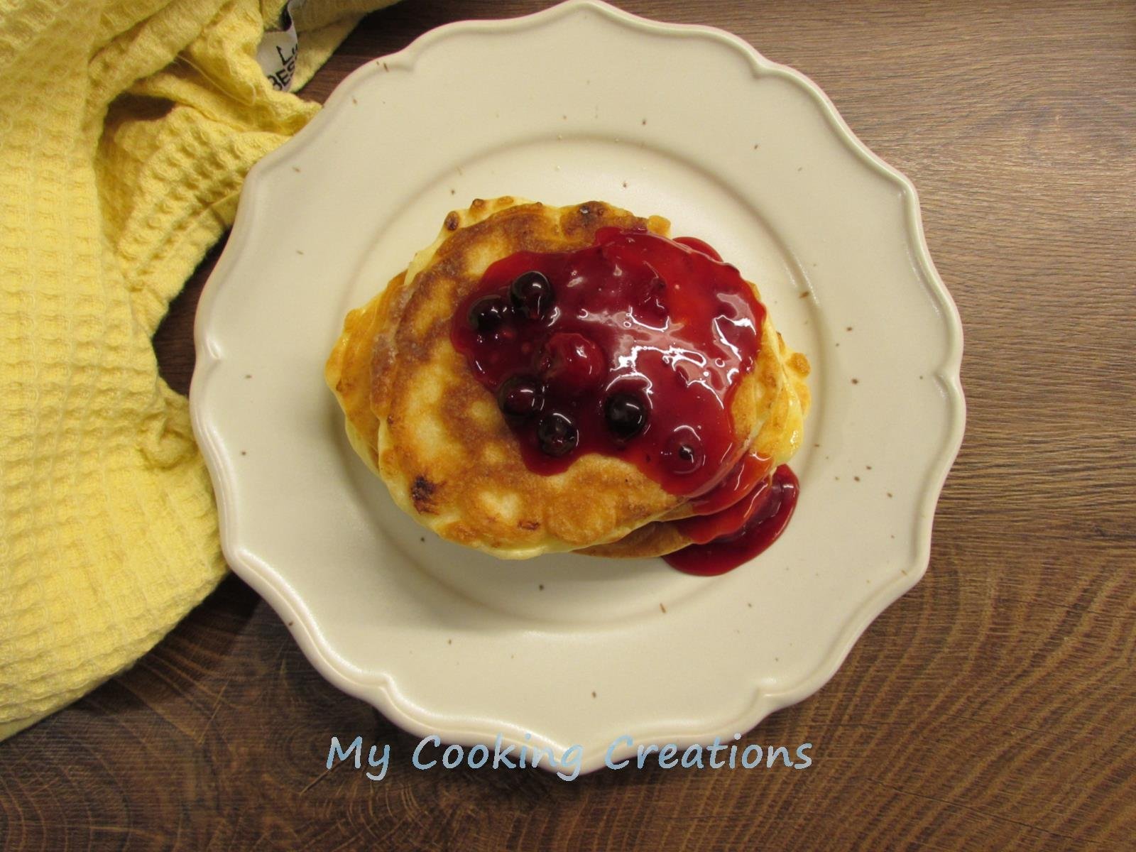 Закуската беше тиганички (американски палачинки) с котидж сирене.