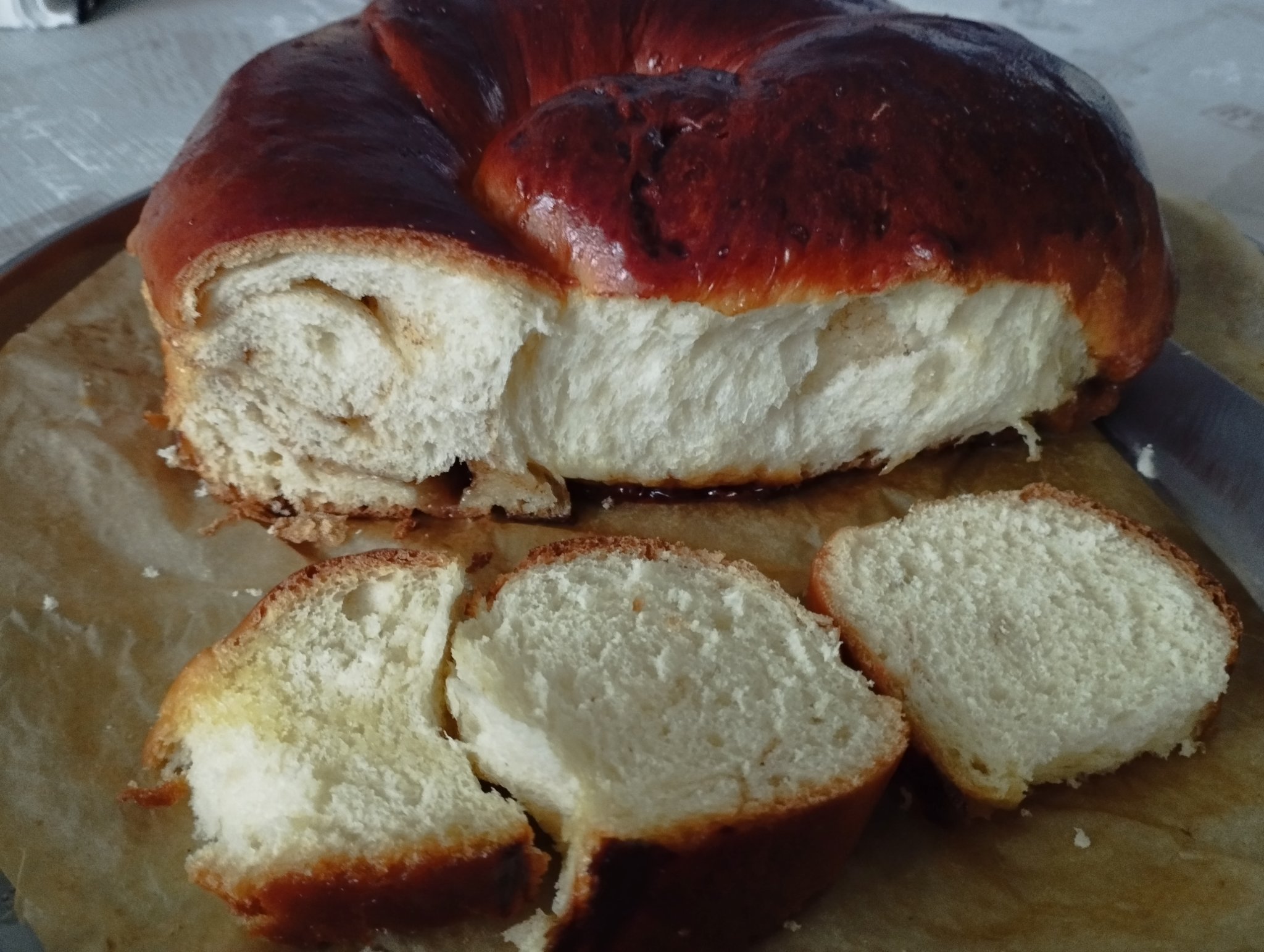 Замесих, втаса, разточих, намазах и навих на руло. Втаса отново, намазах с жълтък и пекох в загрята на 180 градуса фурна.[/quote]