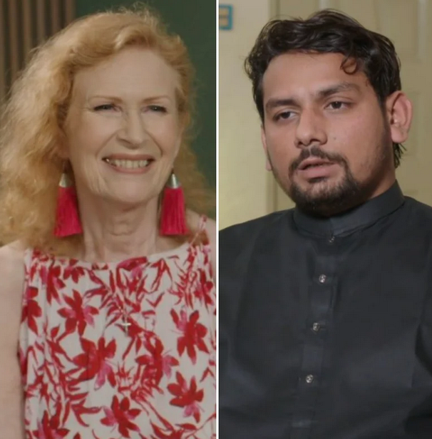 А, тя е от "Наобратно", не от британското. Рисува, обича изкуството и си е намерила по интернет мароканец на 24 години, който също обича изкуството, прави коментари на нейните рисунки ,вази и т.н., говорели си за изящни изкуства в интернет, ти да видиш. Нейният син е с 20 години по-голям от този Осама, мароканеца. И като разбра, че майка му ще се жени за над 40 години по-млак от него, му светна червената лампичка, че мароканчето е използвач. Даваха ги миналата събота в "Наобратно", тази вечер е новият епизод.