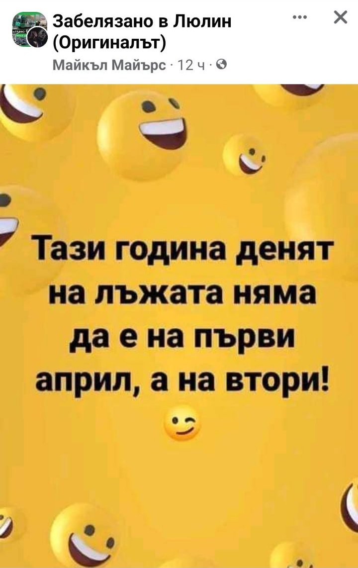 Честит първи април - ден на хумора и шегата, а тази година се падна и ден за размисъл не на шега.