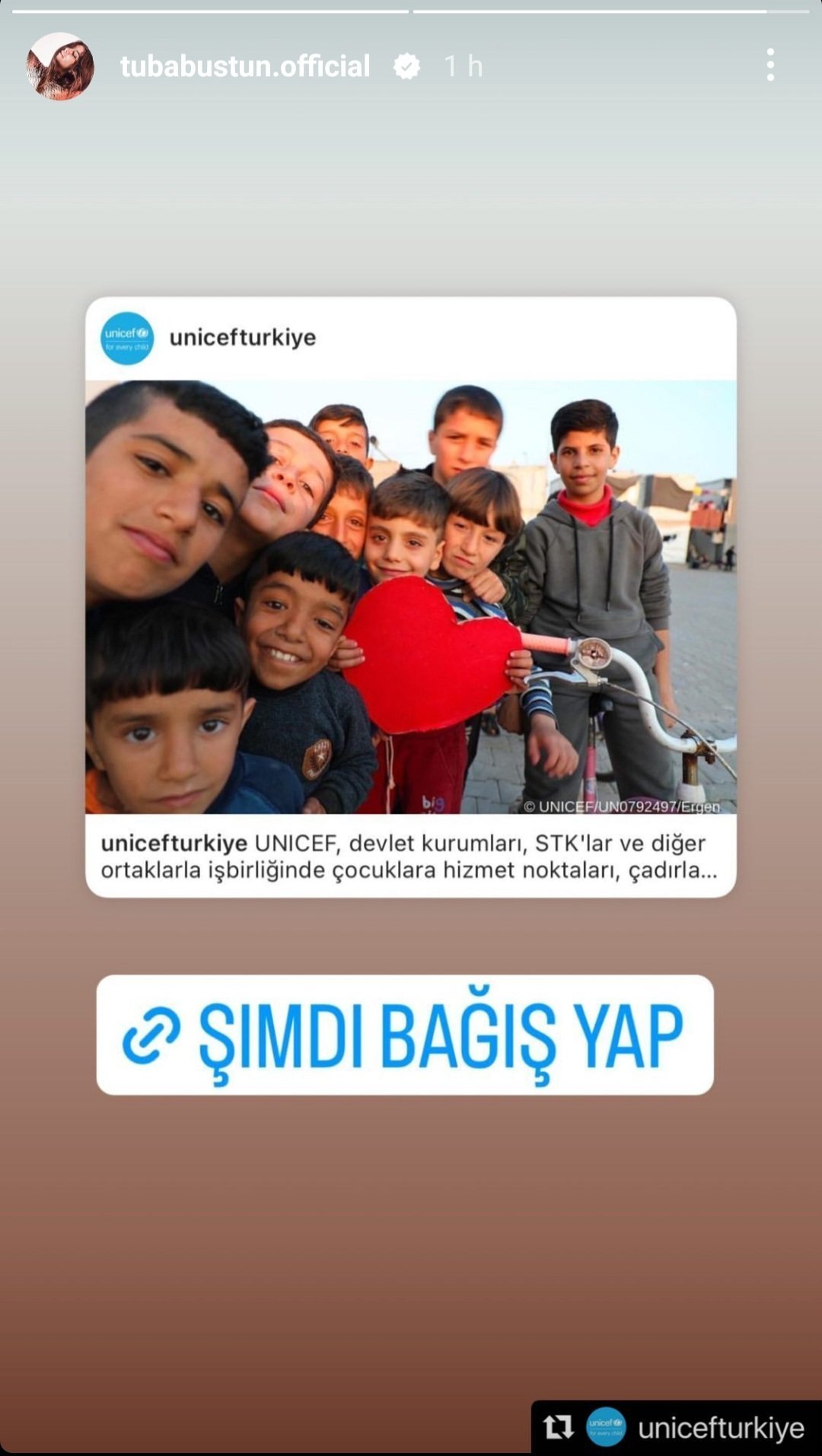Туба добави репост от UNICEF Türkiye към историята на Instagram УНИЦЕФ