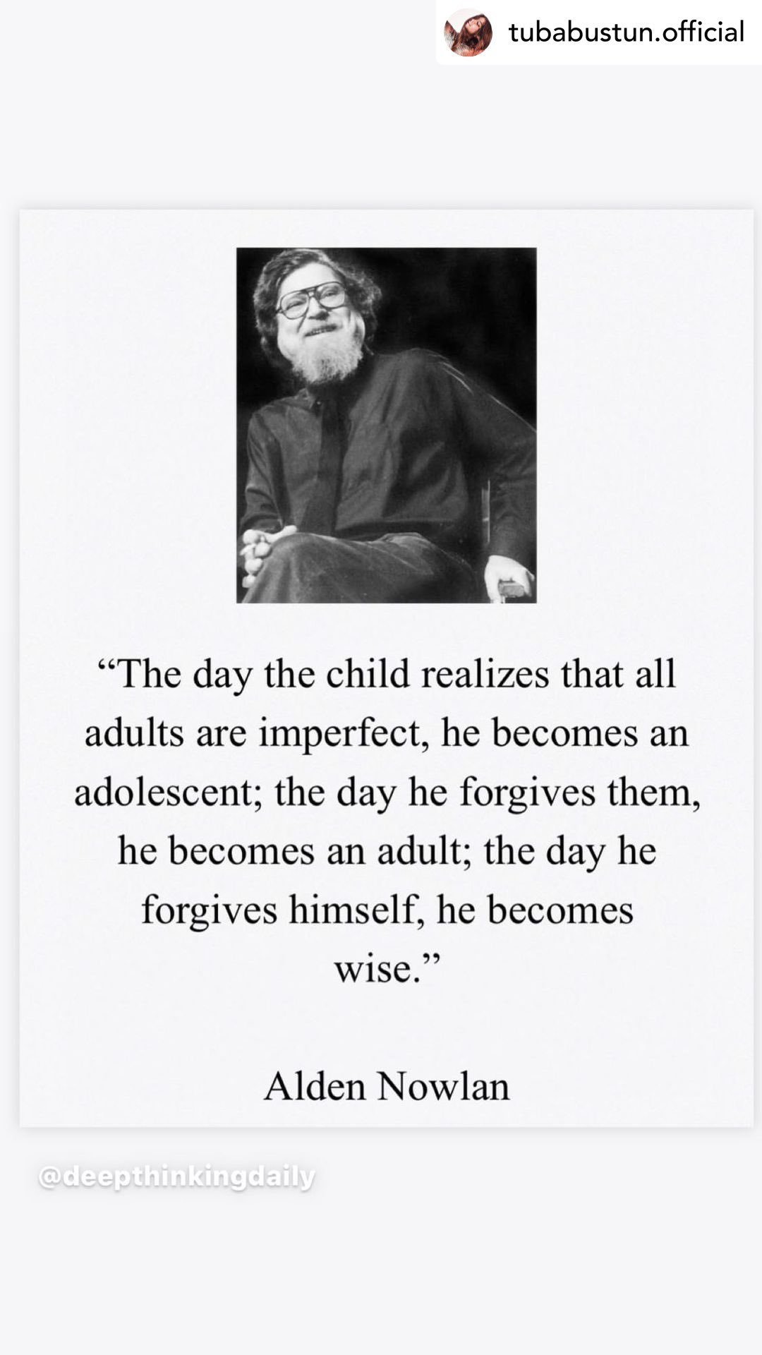 В деня, когато детето разбере, че всички възрастни са несъвършени, то става тийнейджър; в деня, в който им прости, той става възрастен; в деня, в който си прости, той ще стане мъдър"