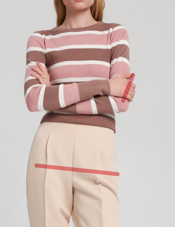 не съм нито слабичка, нито нисичка, взех Л от този пуловер с лекото опасение, че може да ми бъде къс и/или тесен