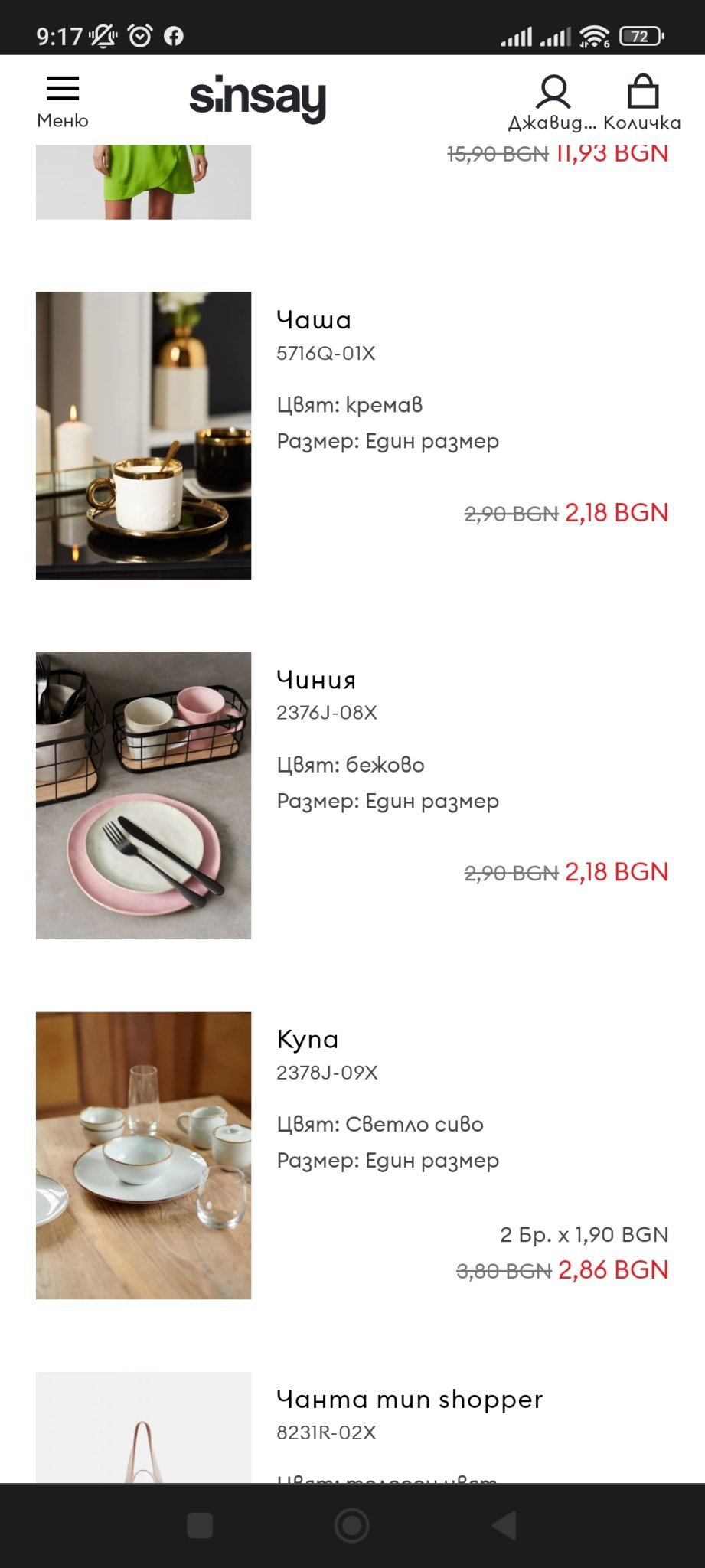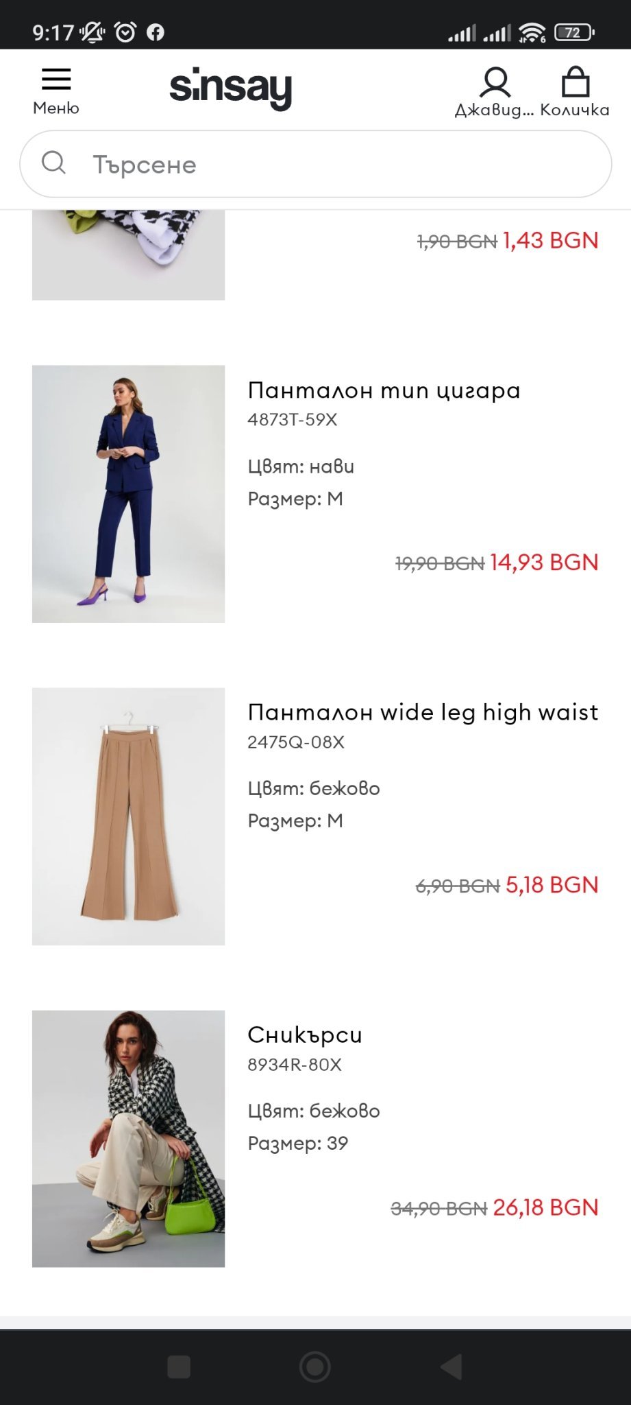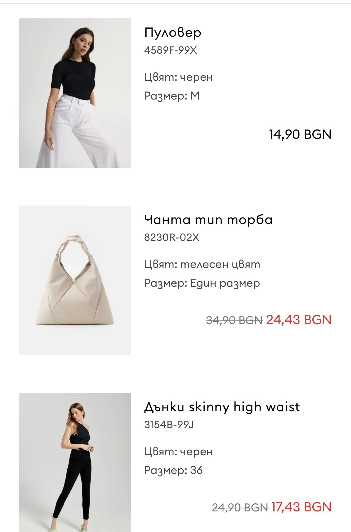 Имат готини чаши намалени. Бежовият панталон е много хубав, взех още един. Стария не беше на такава далавера.