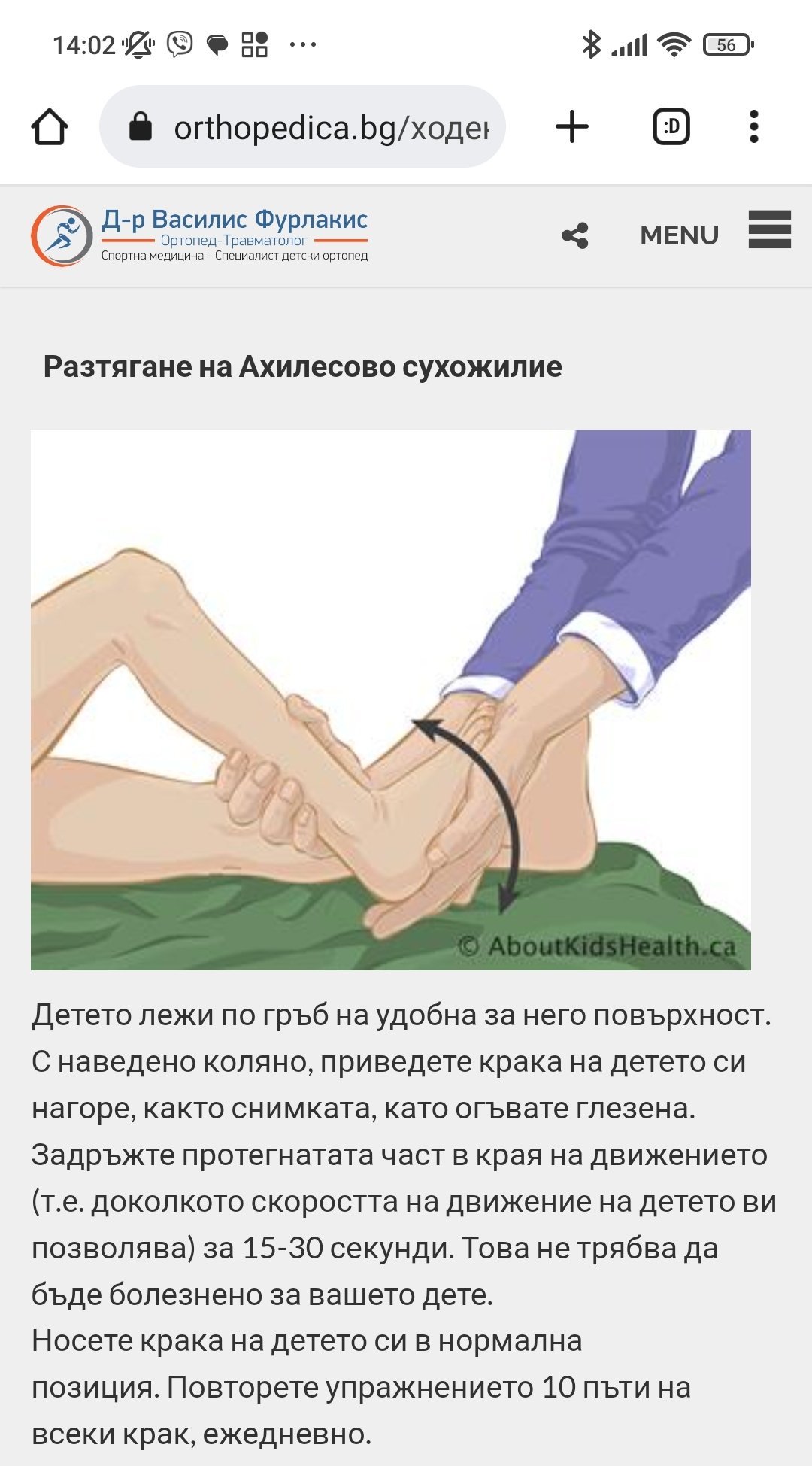 Препоръча всеки ден да правим упражнение за разтягане на ахилесовото сухожилие: