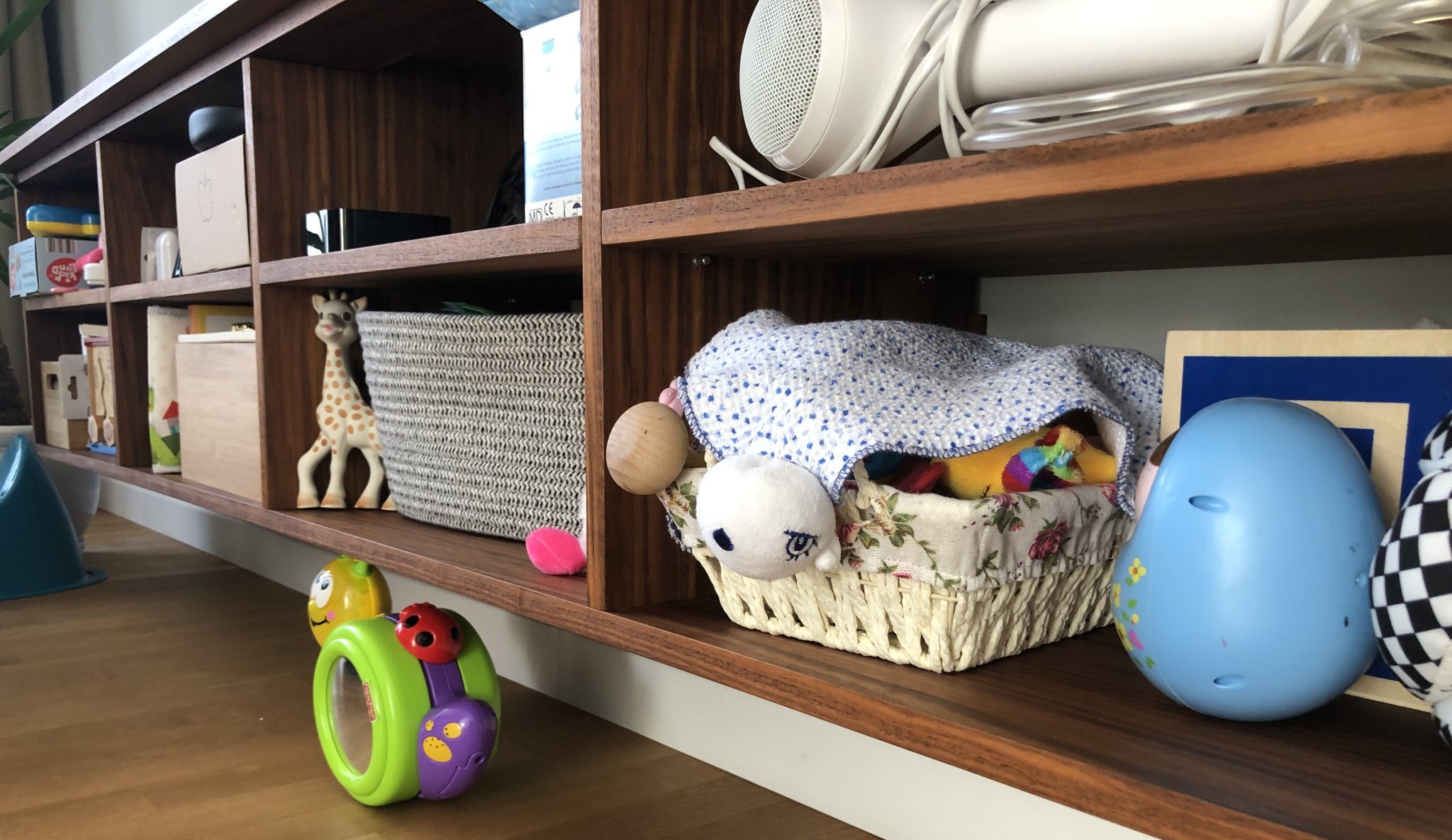 Нашата “етажерка” е шкафа под телевизора в хола.