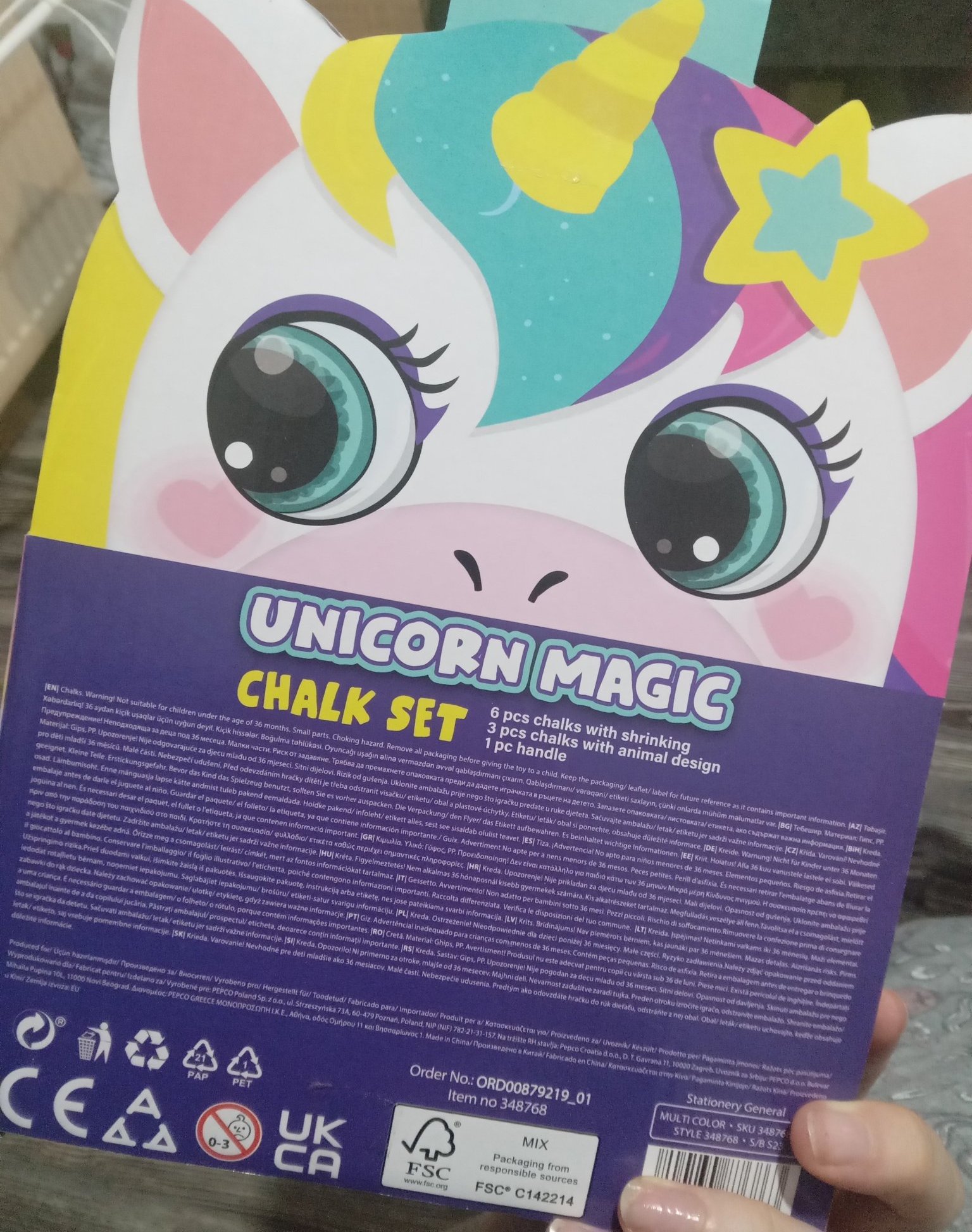 Взех някои нещо,но сякаш комплекта тебешири е само за показване😁има си поставка където се слага самия тебешир да не се цапа ръката на детето.