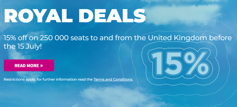 Промо за 5 и 6 май,  15% за пътувания от/до Великобритания. Важи за полети до 15 юли.