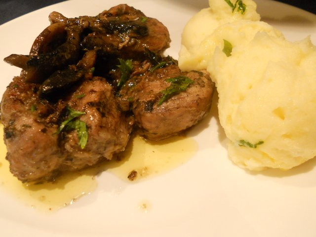 СВИНСКО БОНФИЛЕ С ГЪБИ И ВИНО МАРСАЛА