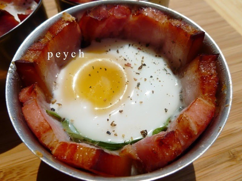 може и директно на едно дървено плато да се нарежат яйцата , поръсени с черен и червен пипер , да се нареди запечената на резени шунка и да се нареже красиво кашкавала ... сос отстрани какъвто се харесва, може и сос за печене , шунка, и една зелена салата Simple Smile