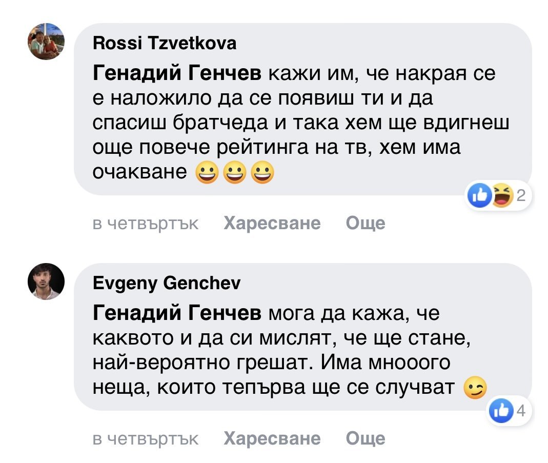 Кефи ме как единият се казва Евгени Генчев, а другият Генадий Генчев... тоя дядо Гено... Grinning