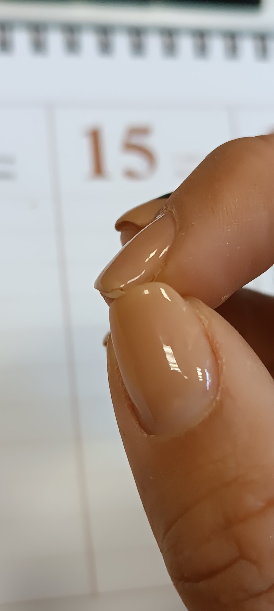 Тропи, свали покртието и можеш да го залепиш със салфетрка, чаена торбичка, фибростъкло. На мен лично чаената торбичка не ми издържа преди време като лепих и си плеснах от тогавашните безвлакнети кърпички, които са като лентите за коламаска, защото са по-дебели и ми издържа до израстване. Сега и клип ще ти пусна да се ориентираш ак става. Аз действах така- нанесох си тънък слой с втриване база, след това пак мацнах база и на мокро си сложих парченцето, нагласих го и изпекох, запилих да се изравнят разлики и неравности(тъй като е дебеличка кърпата) и после си укрепих както си знам и продължих нормално.