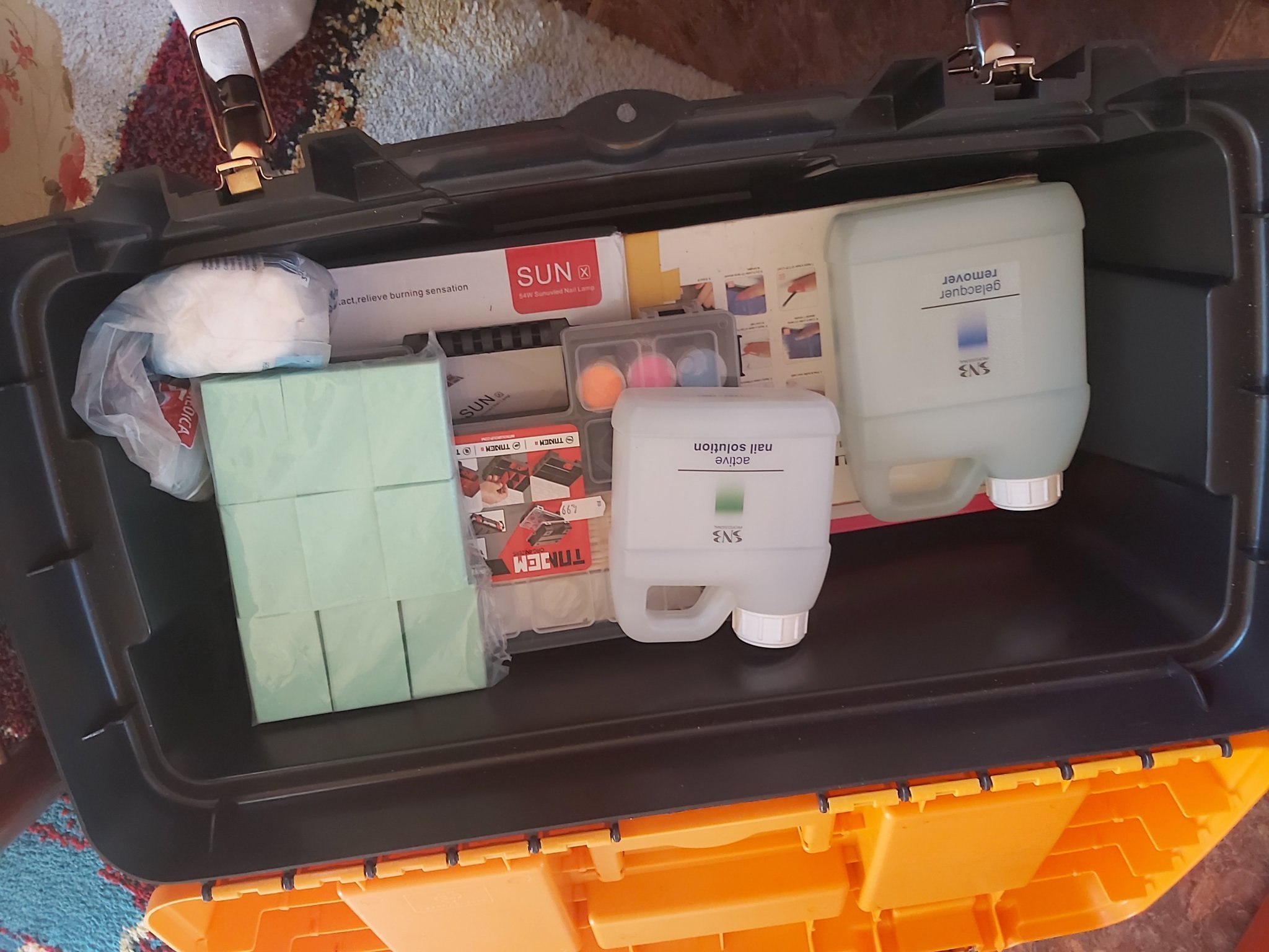 В интернер има специални куфари за гел лакове, но бяха много по-малки и много по-скъпи. В бриколаж съм виждала едни кутии за лекарства на един или два етажа, които за по-малко количество вършат работа. Бях разглеждала и рибарски куфарчета, но ми бяха малки нещо на мен. Моя го взех на живо от една железария. В нета търсех, но не ми допадна-няма реална представа за разпределението. Размерите, колко е чисто като размер долу и колко е легенът. А и в нета бяха по-скъпи от този.