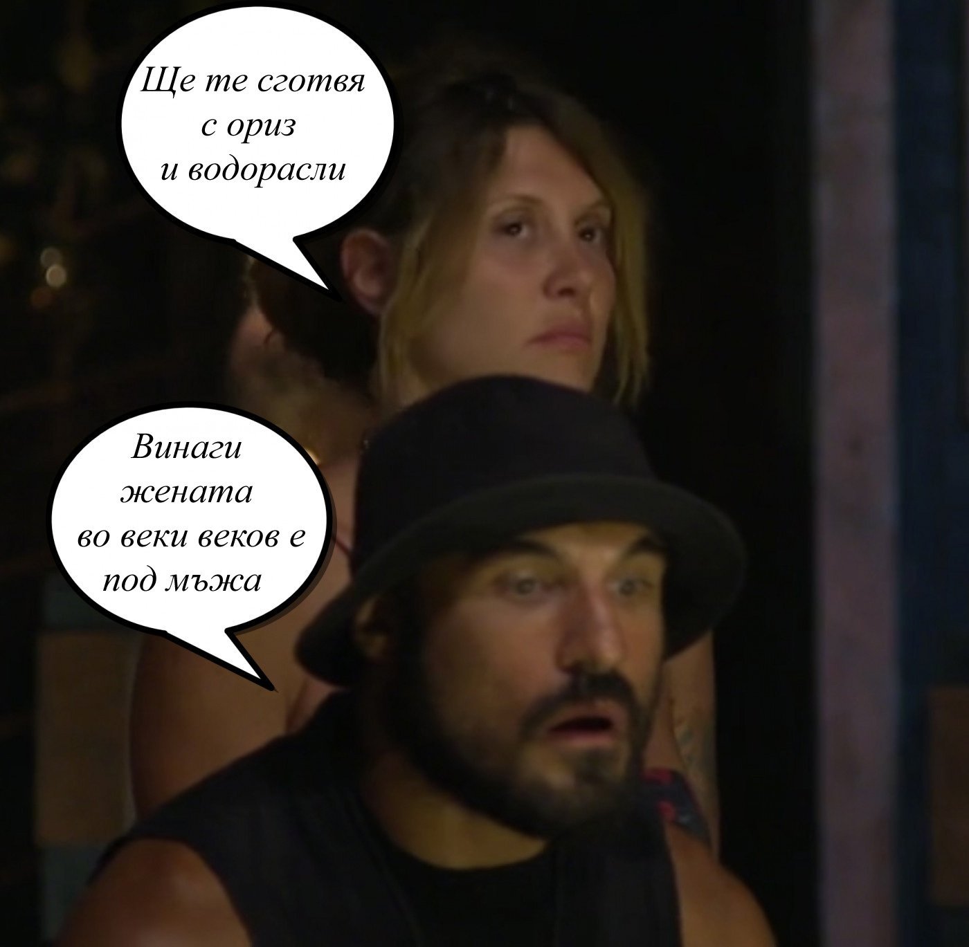 Не мога да повярвам, че това мекотело Мария остана. "Зрителите" май играят за Известните, жалко!  На сините буквално им се приплака като чуха, че Александра си заминава. И те, и ние се надявахме да се освободят от котвата Мария, че да им се поизравнят малко силите с тези на другото племе.