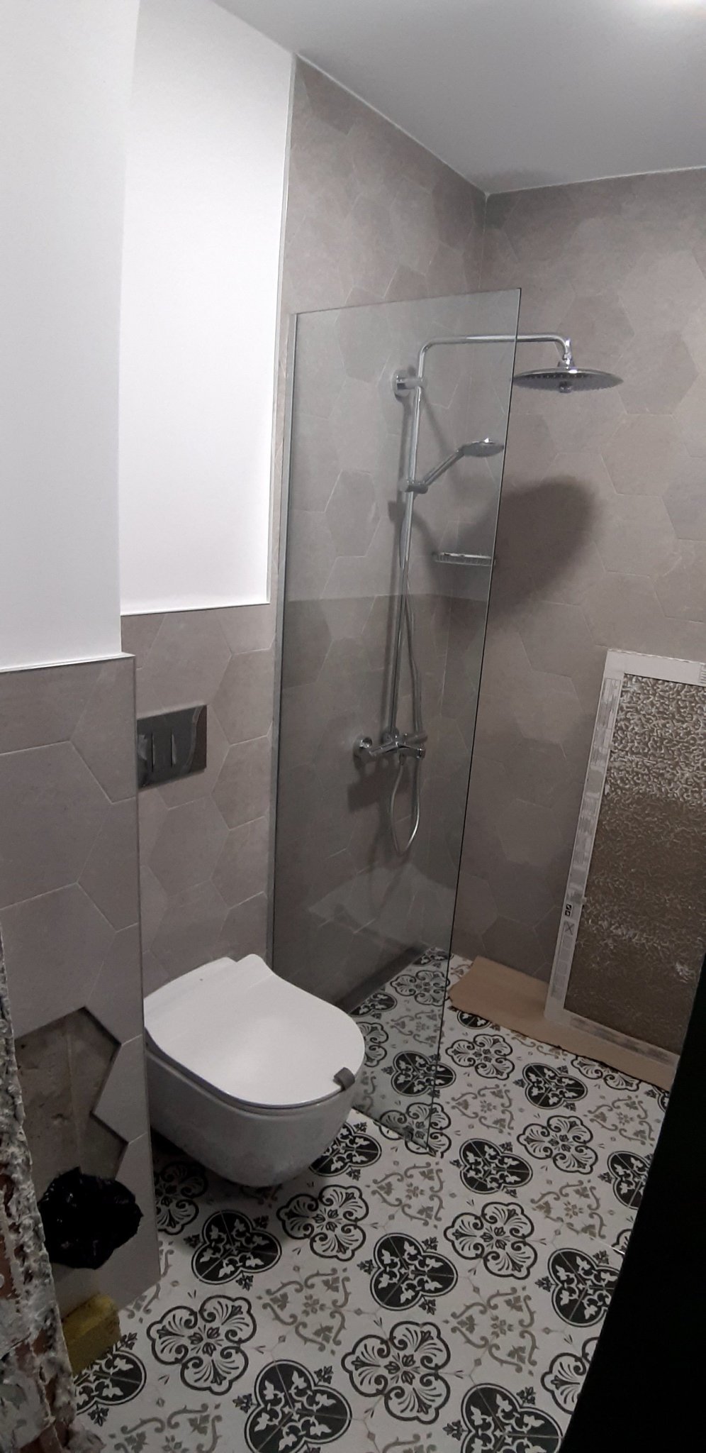 Да, това със стената е много практично, но наистина е за по-големи бани. Нашите и двате са по 3-4кв и стъклените паравани са ни вариантът.