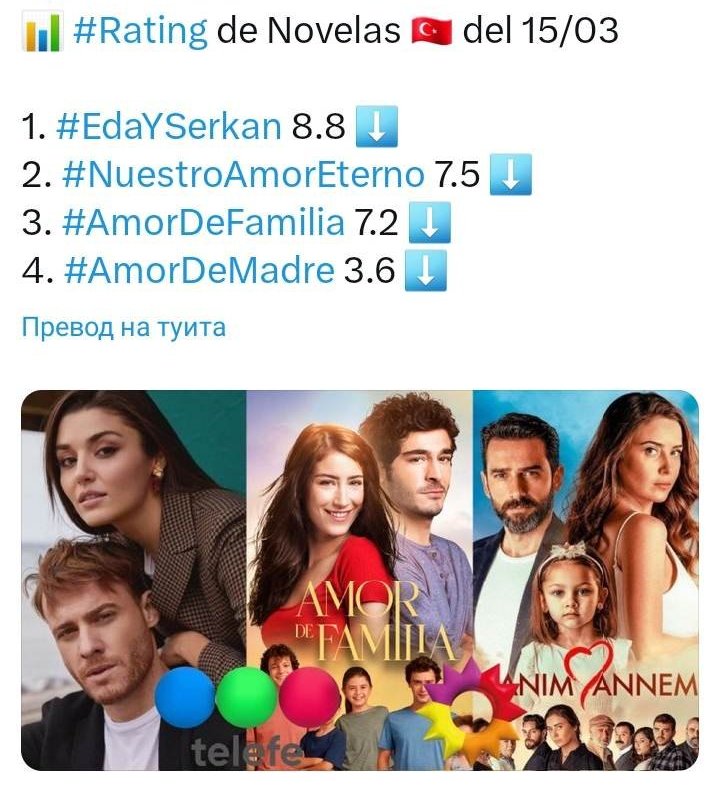 Рейтингът от излъчването на сериала в Аржентина по Telefe.