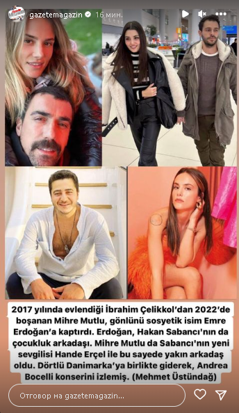Поредната статия отново от Акиф. В нея пише, че Михре Мутлу, която се омъжи през 2017г. за Ибрахим Челиккол, а се разведе с него през 2022г., се е залюбила с Емре Ердоган,  приятел на Хакан Сабанджъ от детинство. Така покрай нея Ханде започва връзката си с "ленивеца".