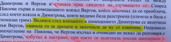 Нека първо заведе, защото аз не виждам кое точно ще посочи за невярно, позорящо и умишлено разгласено в нейно отсъствие обстоятелство. Вергов няма официално нищо казано по отношение на тези съобщения отвъд "текстови и гласови съобщения от Диана Димитрова, чието съдържание не пожелавам на никой родител да види и чуе в телефона на петнадесет годишното си дете."Т.е. той описва своята реакция, а не пряко самите съобщения. И нормално - това е писано ако не изцяло от адвокат, то поне е обстойно редактирано. Така се прави с публичните изявления по поводи, при които се намесва прокуратурата - дано и Димитрова вземе пример и започне да търси навременна консултация с хора, защитаващи интереса и. А не както беше нейният отговор "изрод, рецидивист" итн.