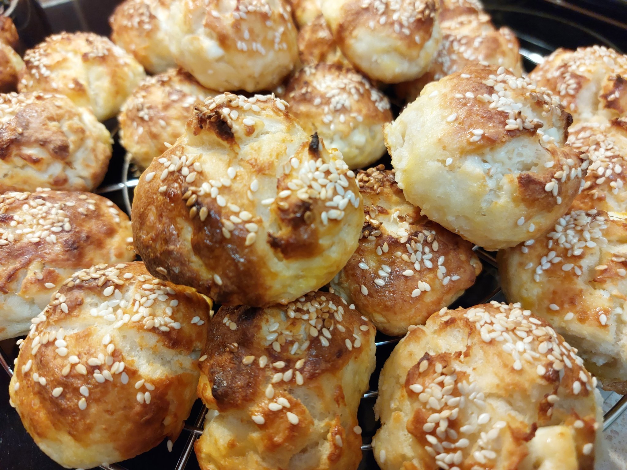 Всяка от питките се разточва леко, след което се разтяга с ръце, в началото в средата, а след това се слага върху кухненска кърпа и започват да се разтягат краищата, докато е възможно. Кората се поръсва с олио и плънка. Навива се руло с помощта на кърпата, като постепенно се повдига. След това се навиват банички на охлюв и се слагат в намазнени и набрашнени купички за печене. Отгоре се поръсват с останалата част от мазнината. Слагат се в предварително загрята на 200*С фурна и се пекат до зачервяване.