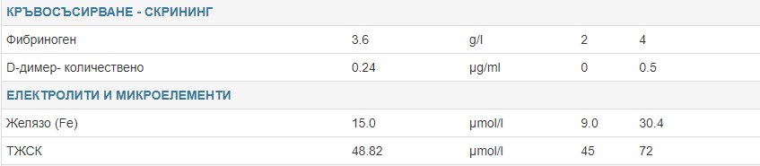 Отделно ми пуснаха и изследвания за желязо по-принцип съм си в нормата там.