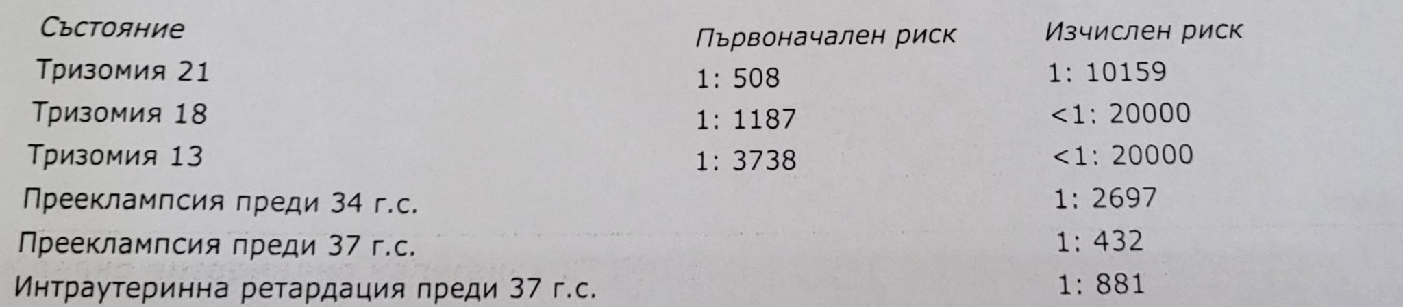 Добро утро, момичета 🌷 Минавам да се отчета - БХС мина тази сутрин. Всичко изглежда наред. Костта на носа била добре оформена, нухалната гънка е 1.50 мм . Ето ги и рисковете: