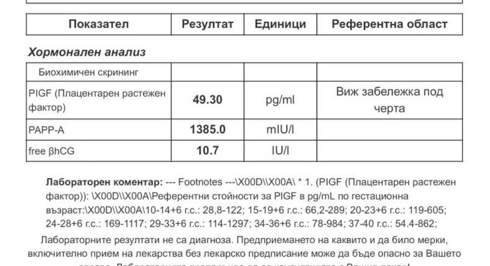 Добре изглеждат като цяло, за папп-а питай дали сочи риск от прееклампсия (НЕ казвам, че сочи, просто попитай да ти кажат).