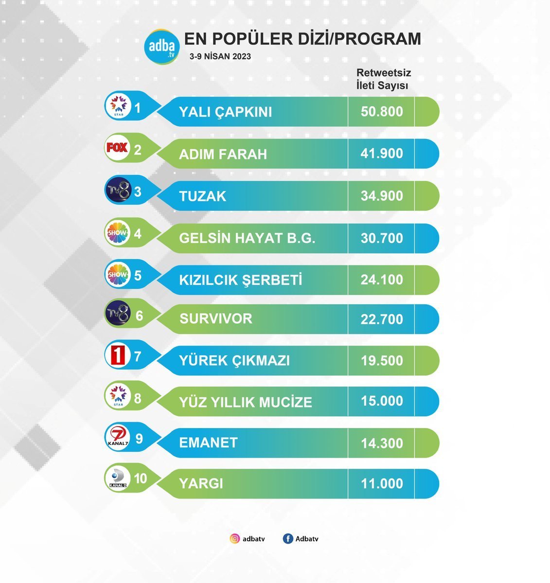 Най-популярните програми и сериали за времето от 3 до 9 април 2023.