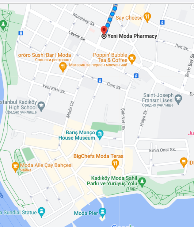 В трамвая нямаше информация за спирките или аз не видях такава, а  и никой не можа да ни каже къде е спирката, на която искахме да слезем (Moda Ilkokulu/ Moda Caddesi) и аз ей така "на око" 😀 избрах една.