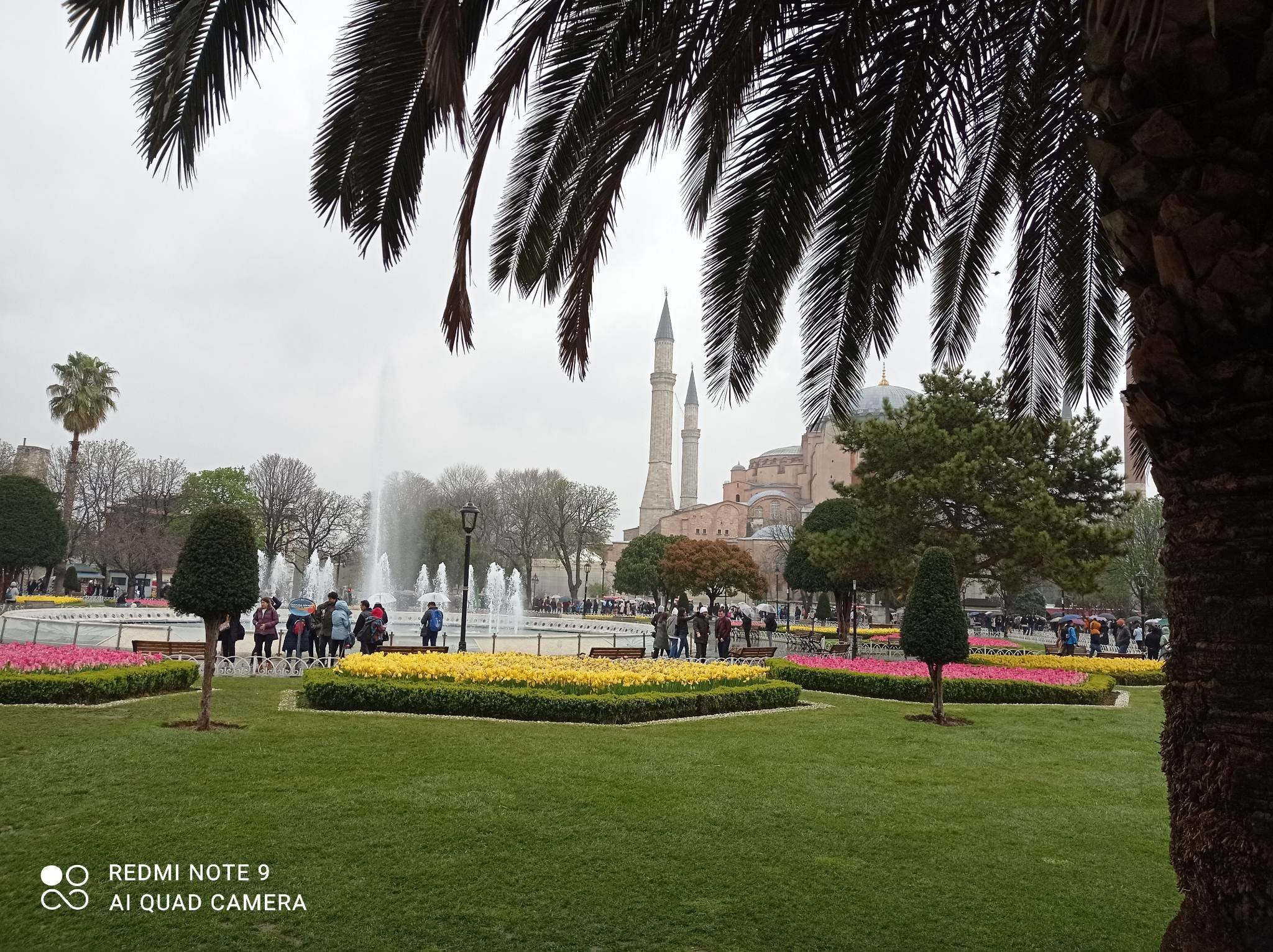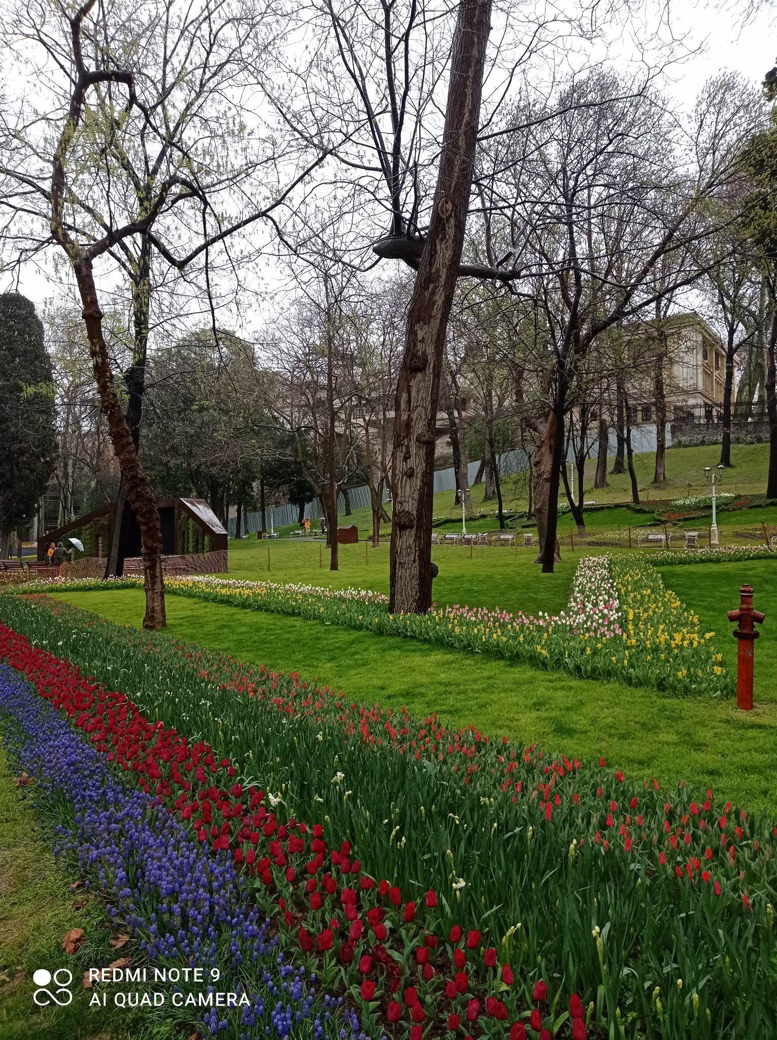 Влязохме в Гюлхане и видяхме малко лаленца, много локви и стена от водни капки, която беше приятната изненада за мен този път. И друг път сме я виждали, но не сме я приближавали по стечение на обстоятелствата. Не знам дали е работела и дали сте я виждали, но въпреки дъждовните капки ми направи впечатление, че капките на атракцията образуват фигури и между тях изписват Gülhane Parkı.