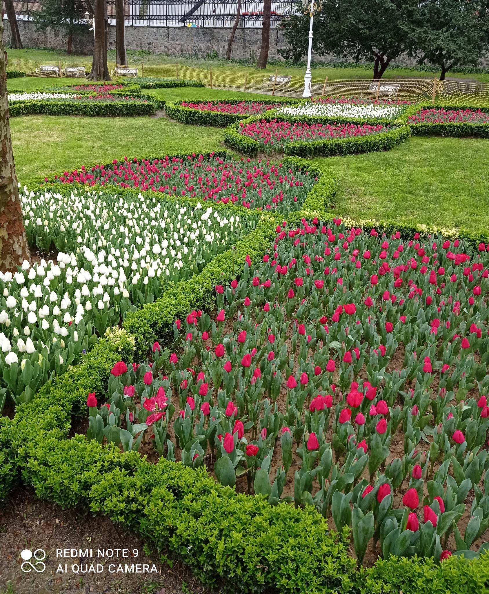 Като бяхме в парка в сряда, лалетата бяха оградени с едни нисички оградни. Сега тези оградки бяха махнати и много хора газеха тревата, за да се снимат точно до лалетата. Обаче имаше едни служители, със свирки, които следяха никой да не ходи из лалетата. И от всички страни се чуваха свирките, но понякога някои от желаещите да се шмугнат в лалетата не обръщаха внимание, че някой свири на тях, та служителите ходеха лично да ги пъдят. Изобщо беше забавно.
