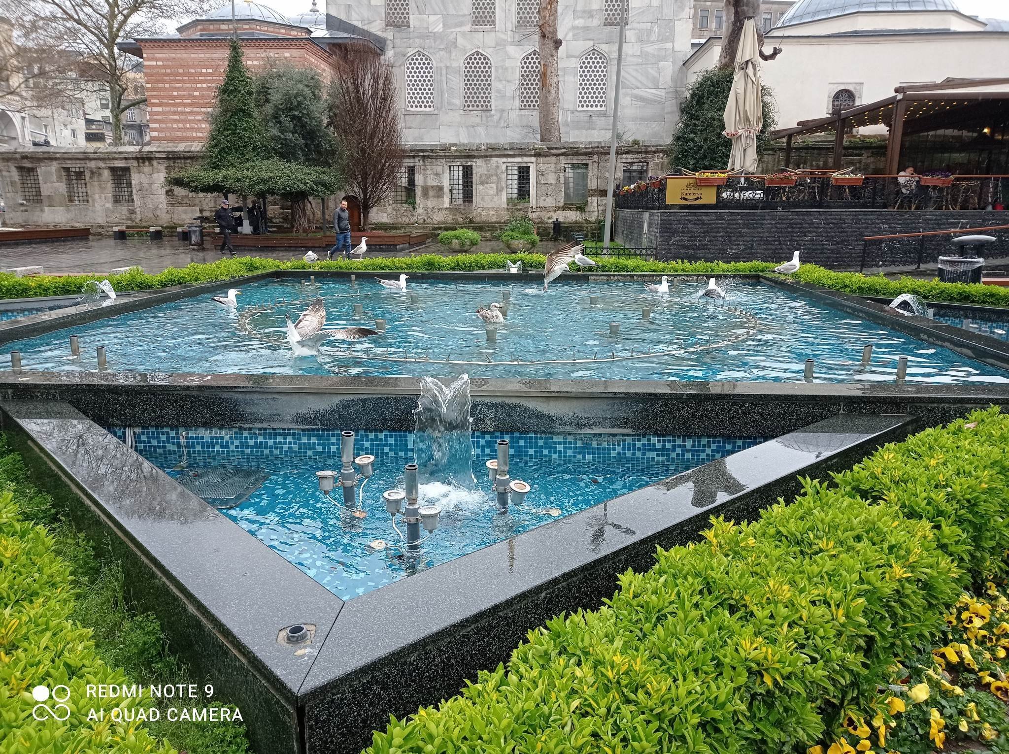 След поредната доза силен дъжд, която изчакахме да отмине в градинката мажду египетския и Йени джами, се порадвахме на гларусите, които имаха СПА следобед във фонтана. Никога не съм се впечатлявала от тези птици (бих казала дори, че ги недолюбвам), но тук бяха изключително сладки отстрани, докато си плаваха, гмуркаха се и се къпеха във водите на спрения в този момент фонтан.