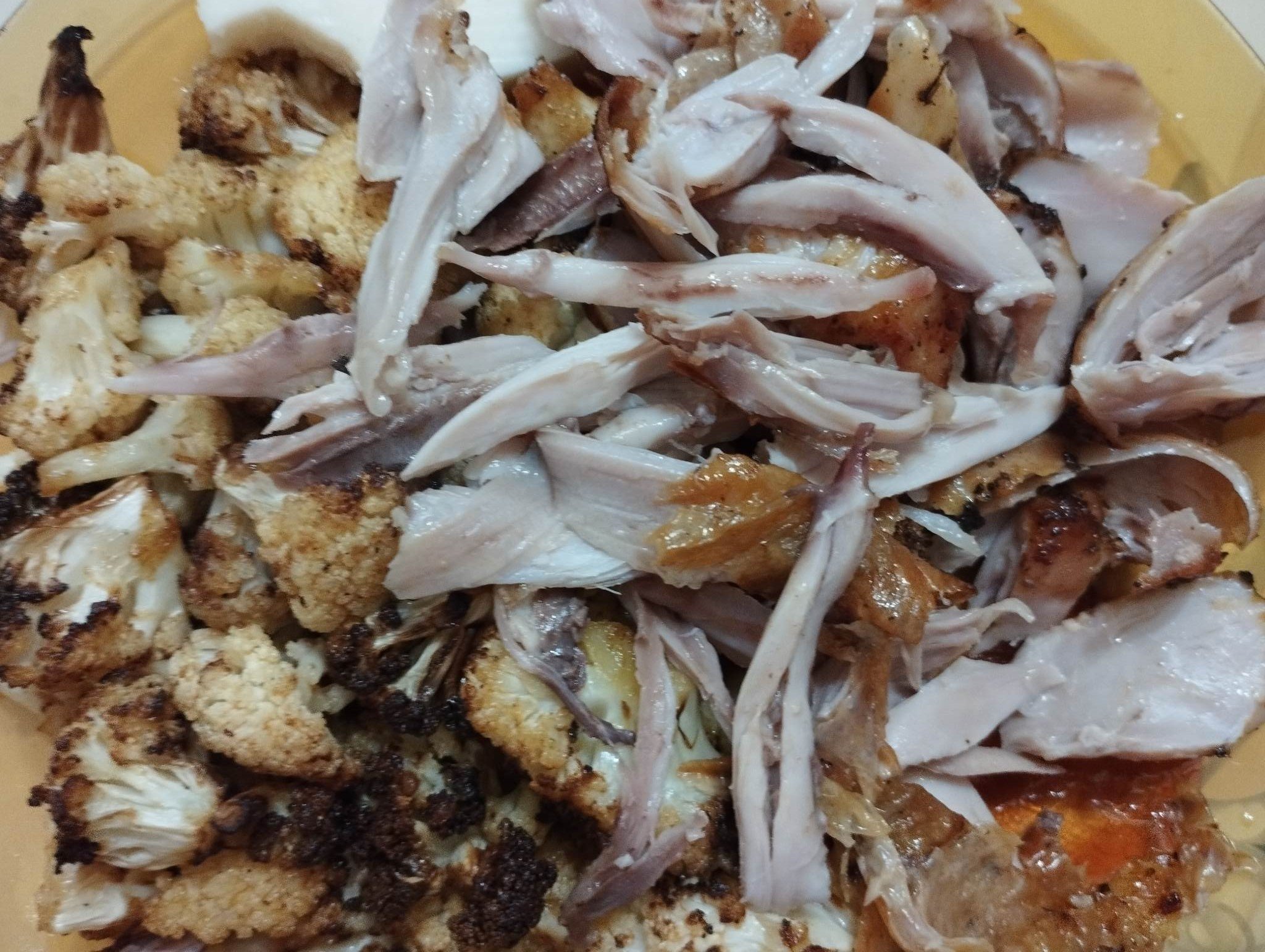 Сега фото на вечерята: пилешки бутчета+карфиол с масло на фраера. Малко и купешка майонеза хапнах с тях, знам че не е ок, но не ми се получава домашната, а зян зехтин да правя, не искам.
