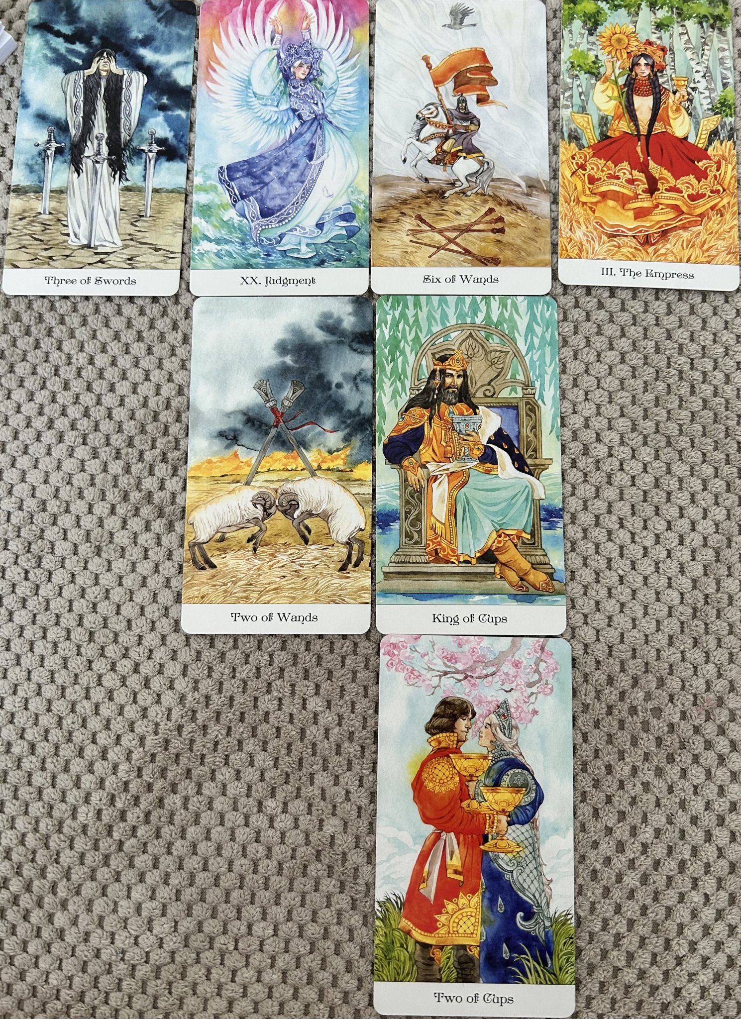 Не си казала дали позициите на картите имат някакви значения, затова ще приема, че просто си изтеглила 3 карти по поставения въпрос.