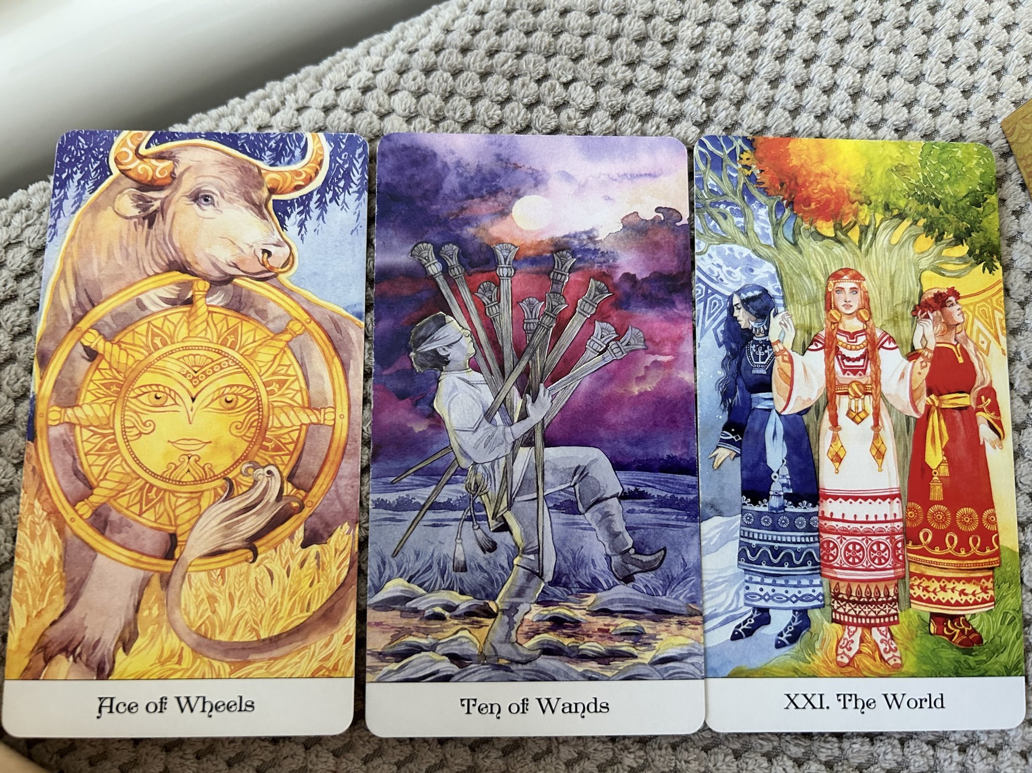 Картите изпаднаха докато разбърквах тестето. По принцип не редя обърнати карти, но 2 чаши изпадна обърната и реших да я оставя така.