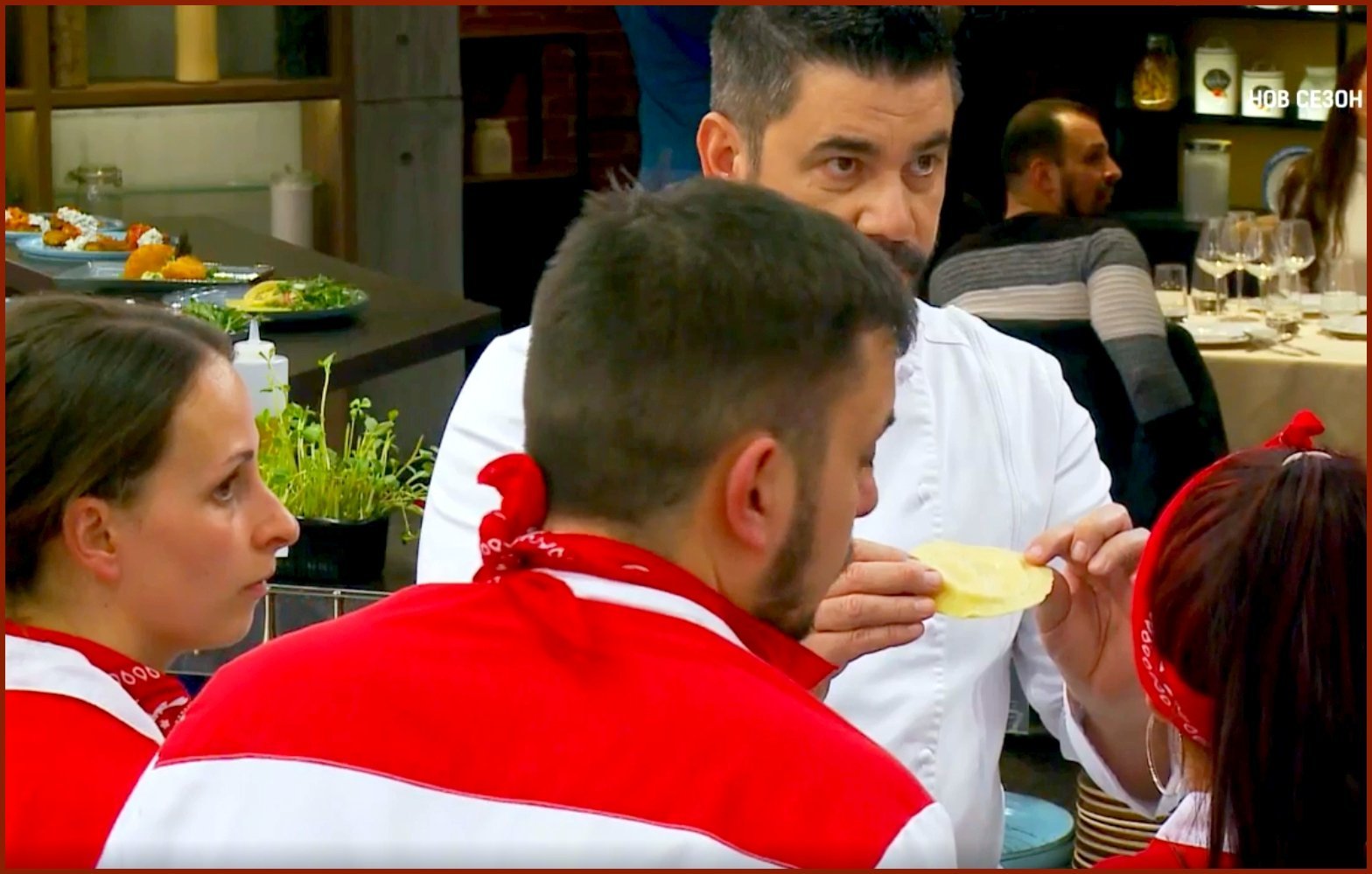 Все пак да похваля епизода, че най-накрая видяхме пълна изкарана резервация от единия отбор, защото червените издадоха и десертите! Всъщност и двата отбора издадоха всичко, но сините получиха помощ от червените и не беше справедливо после шеф Ангелов да рестартира играта с новото условие, да се гледат десертите. Един вид за мен, червения отбор победи два пъти тази вечер!