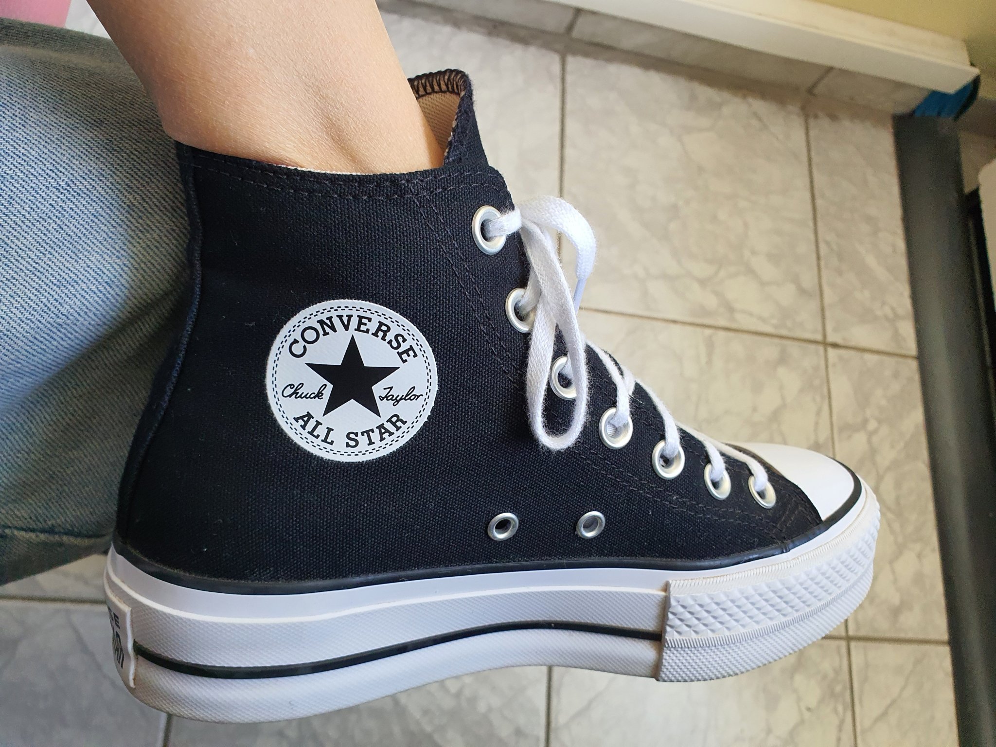 Моите не са Конвърс, честно казано. По-широки са в глезена и завършват с 4 кукички, не дупки.